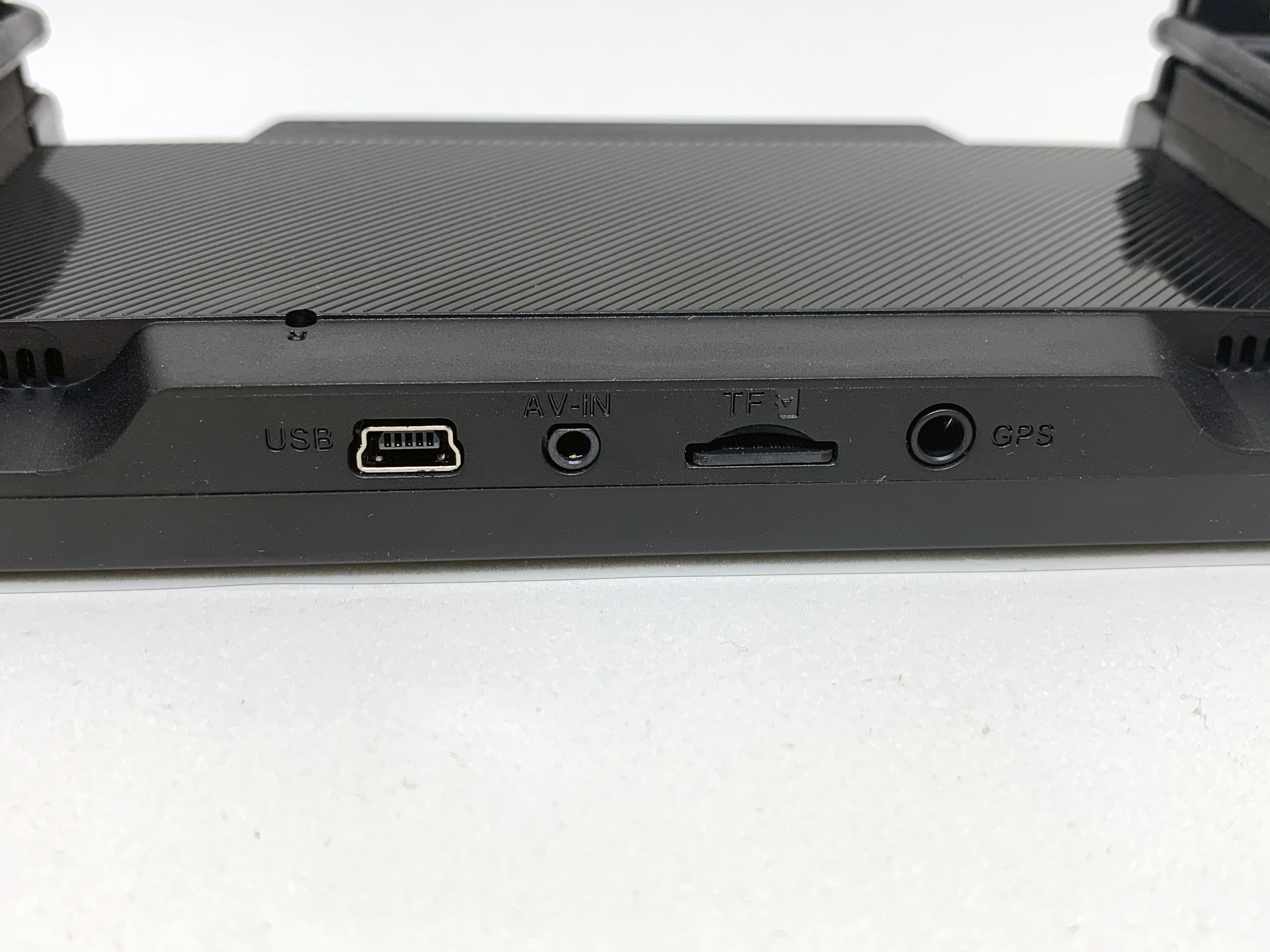 상단에는 USB/ 후방카메라 연결 포트 전원 포트/ 메모리 카드 슬롯/GPS 연결 포트 있습니다.