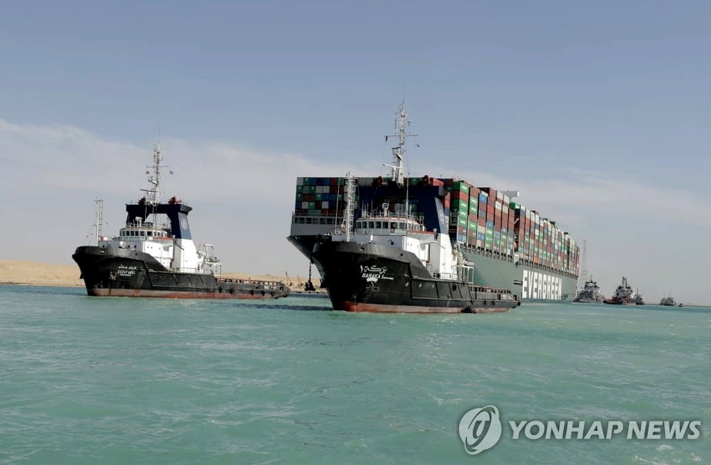 (서울=연합뉴스) 임순현 기자 = 이집트 수에즈 운하에서 좌초됐던 대형 컨테이너선 '에버기븐'호가 일주일 만에 예인돼 운하 통행이 정상화한 가운데, 피해규모와 책임소재를 두고 다양한 주장이 제기되고 있다.