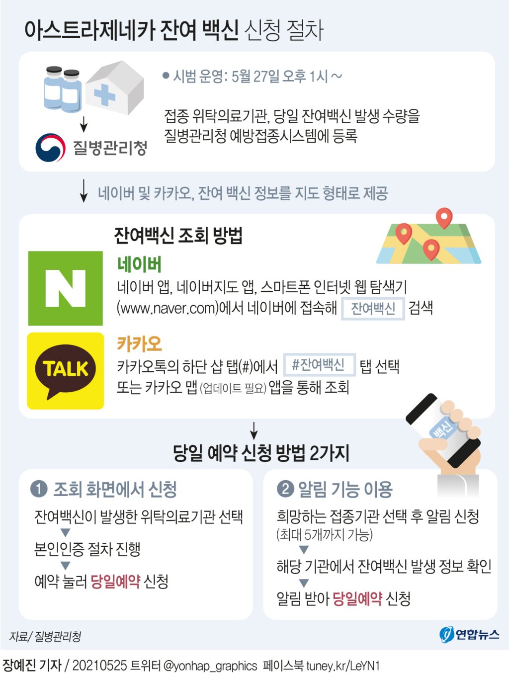 오늘부터 네이버·카카오 앱에서 '잔여 AZ백신' 조회·예약 가능 | 연합뉴스