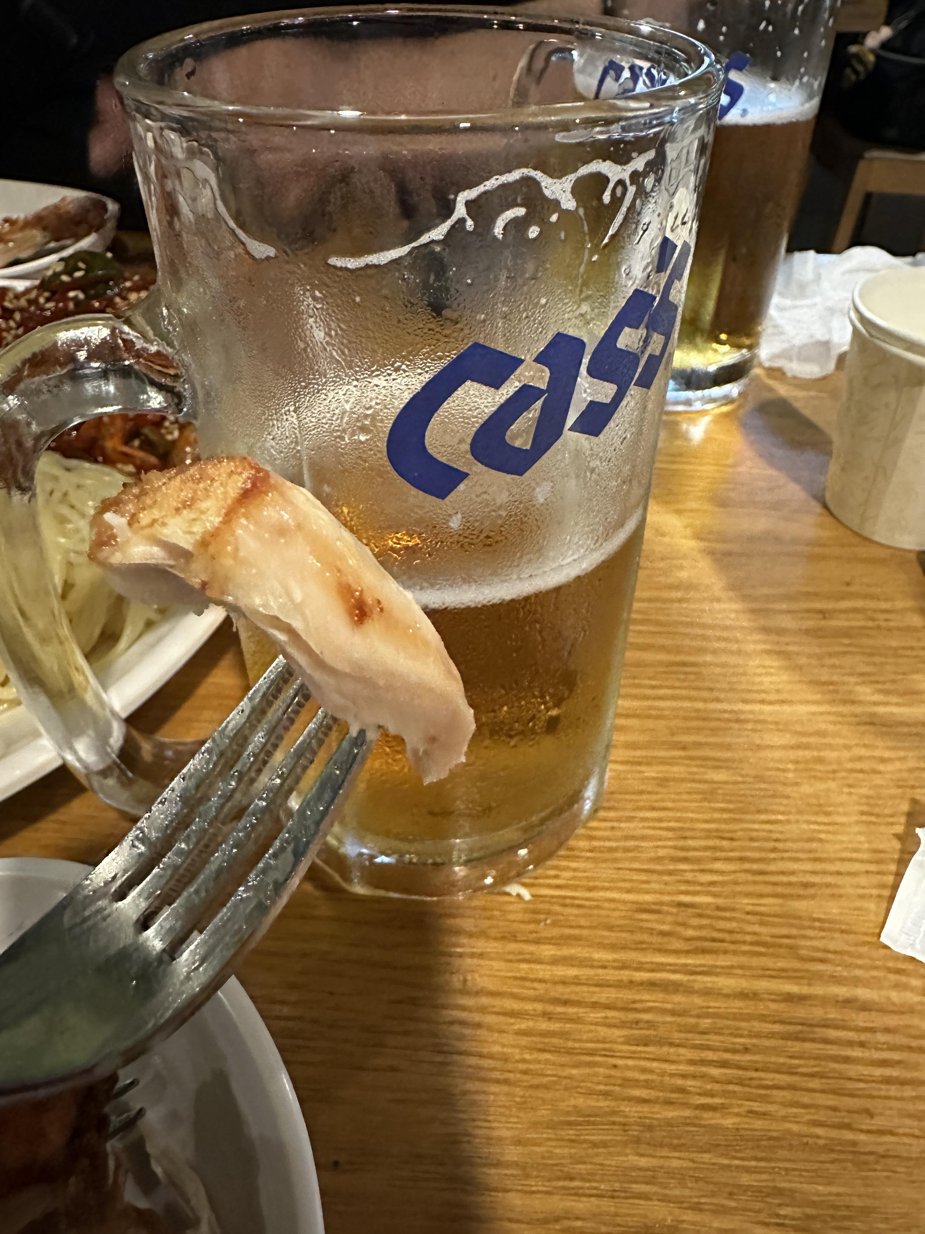 매장에 방문을 했으니 오랜만에 생맥주로 주문하여 먹었습니다.