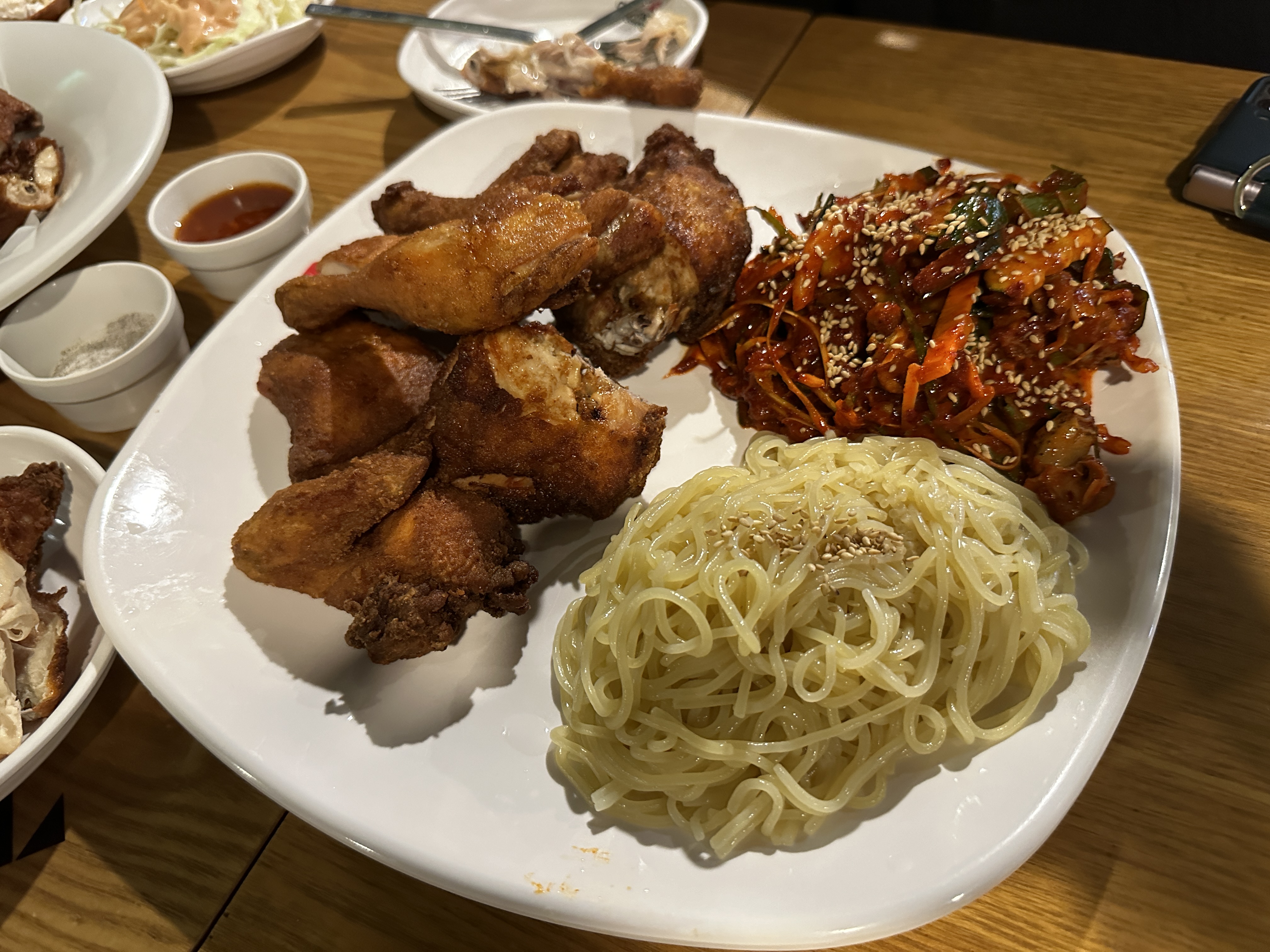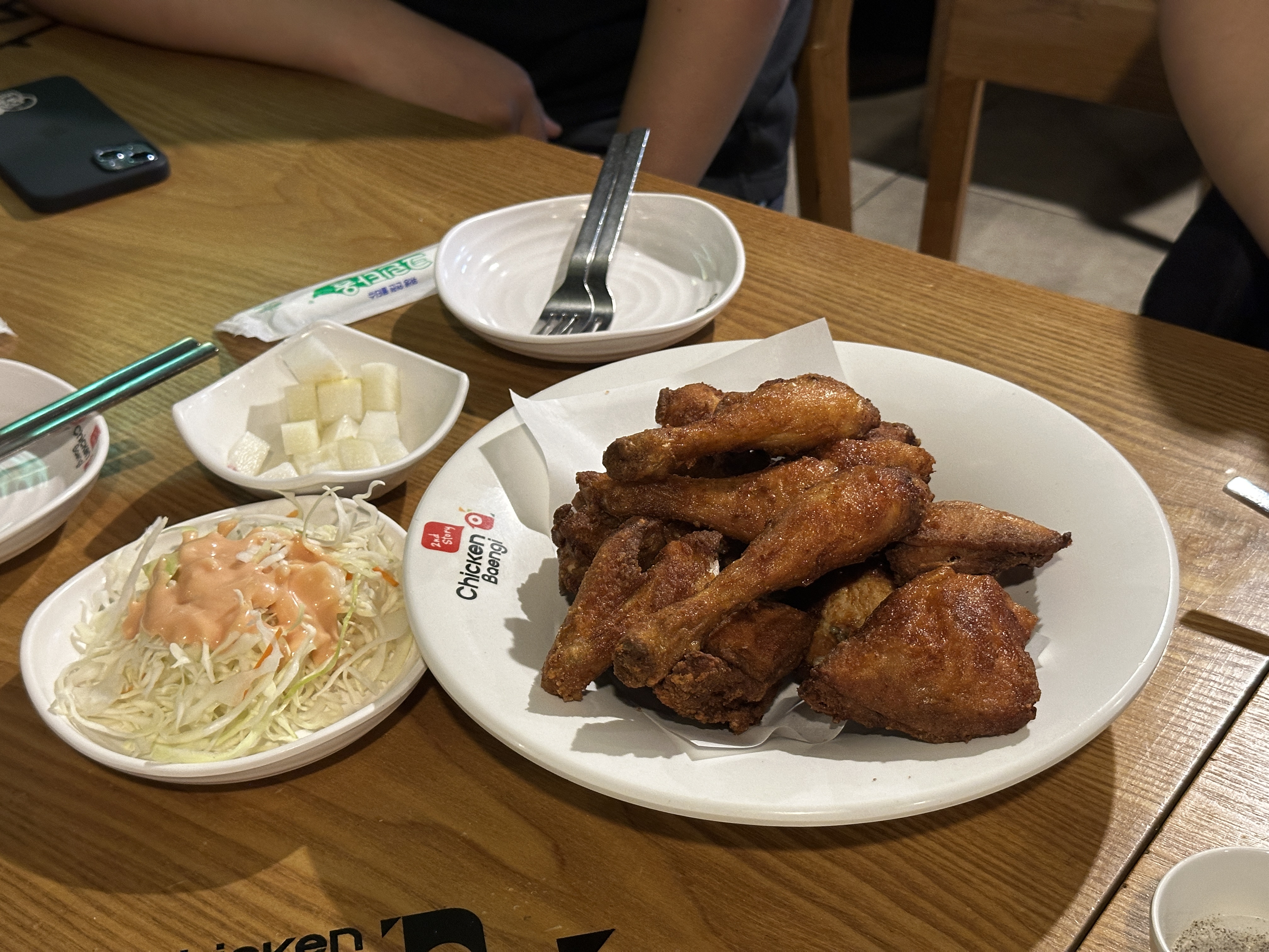 기다렸던 치킨이 나오고 치킨뱅이 만의 별미 옛날 양배추 샐러드가 같이 나왔습니다.
