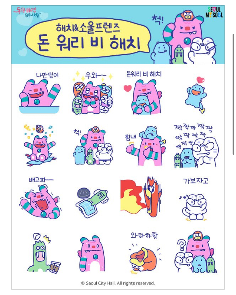 서울시 해치 이모티콘인데. 기존에 서울시 카톡채널이 추가가 되어있는 분들은