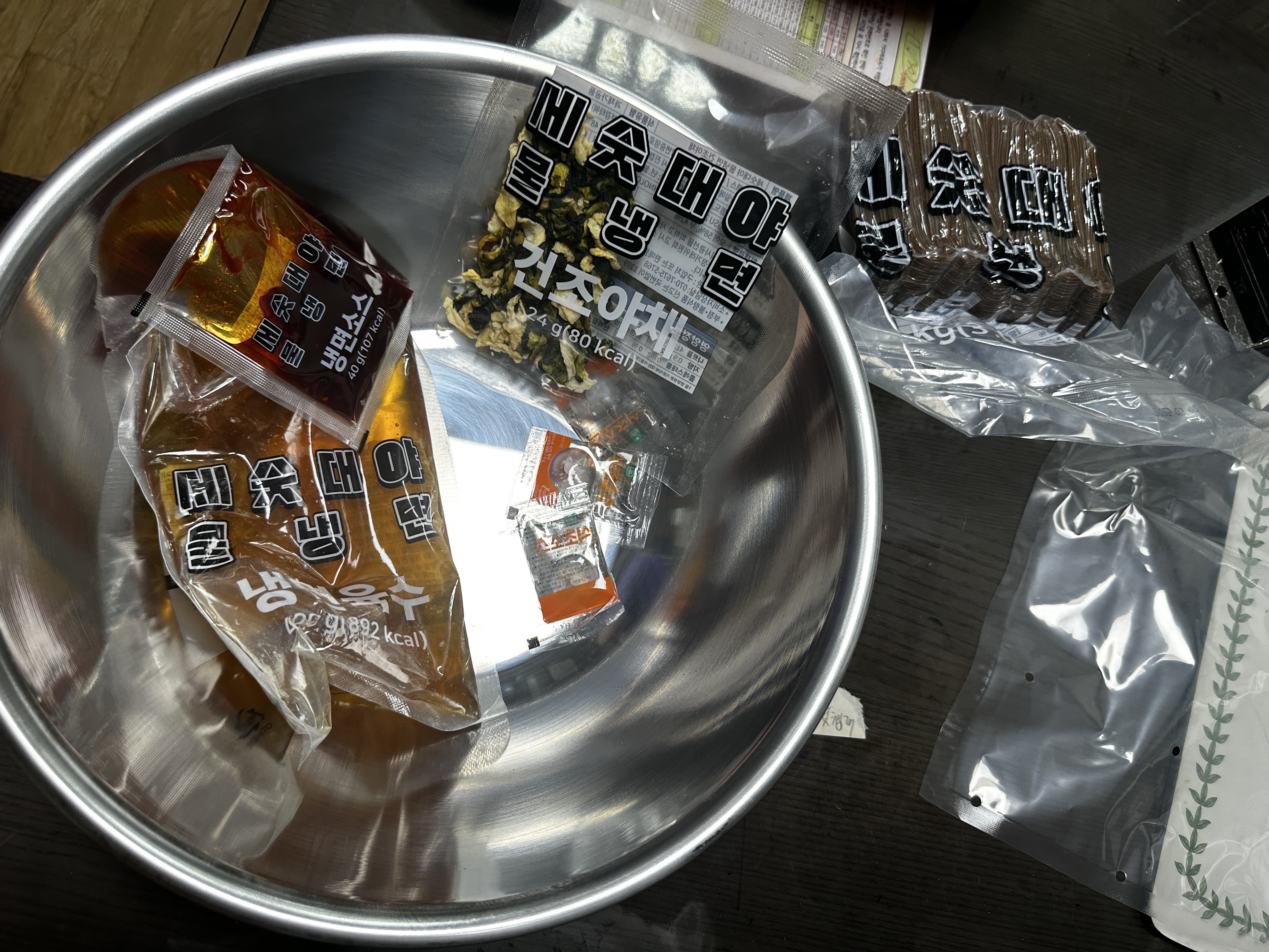 요즘 핫한 세수대야 냉면 드디어 조리해서 먹게 되었습니다.