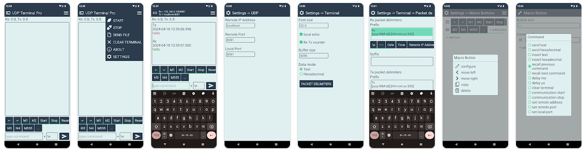 구성 가능한 매크로 버튼이 있는 UDP 패킷 발신자 및 수신자.