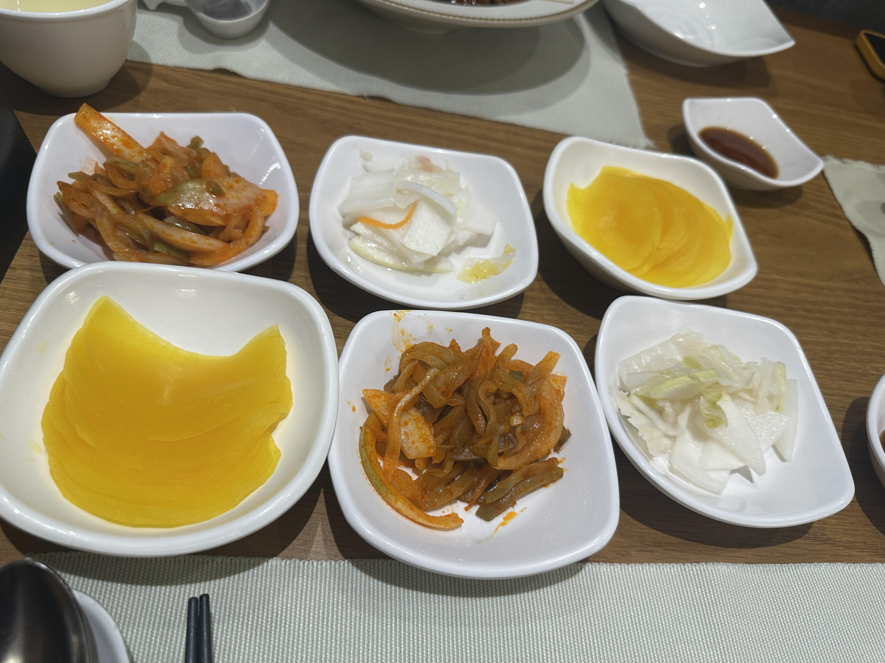 기본 반찬으로는 단무지, 백김치, 짜사이가 제공되었는데, 각각의 맛이 삼삼하게 조화를 이루어 메인 요리들과 잘 어울렸습니다.