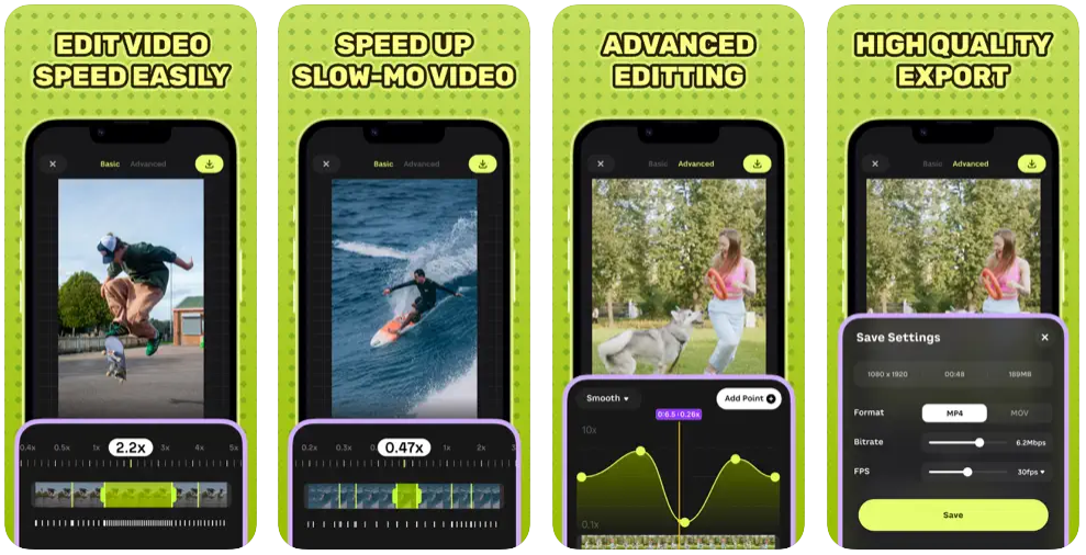 - 비디오의 각 부분의 속도를 독립적으로 편집하여 비디오의 다양한 요소 간의 원활한 전환을 보장합니다.