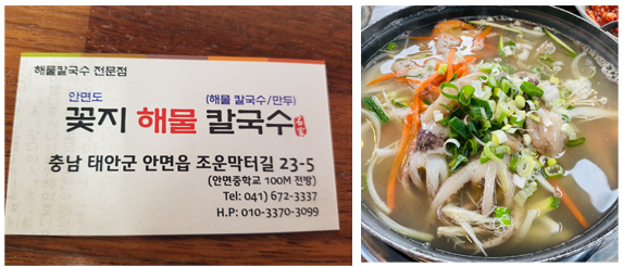 - 대표음식: 해물칼국수, 바지락칼국수, 만두