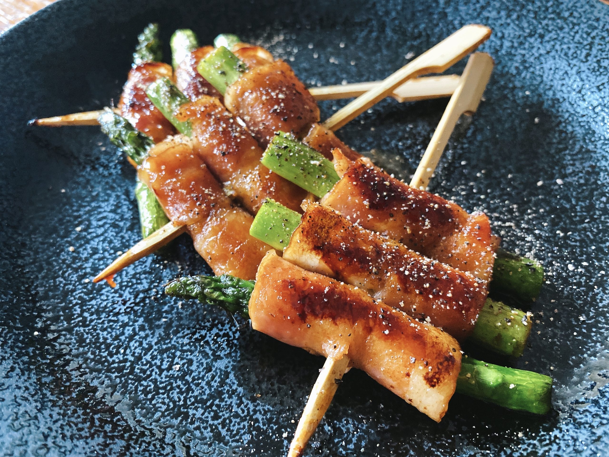 - 조리법: 아스파라거스를 베이컨으로 감싸 꼬치에 끼운 후, 타레로 양념해 굽습니다.