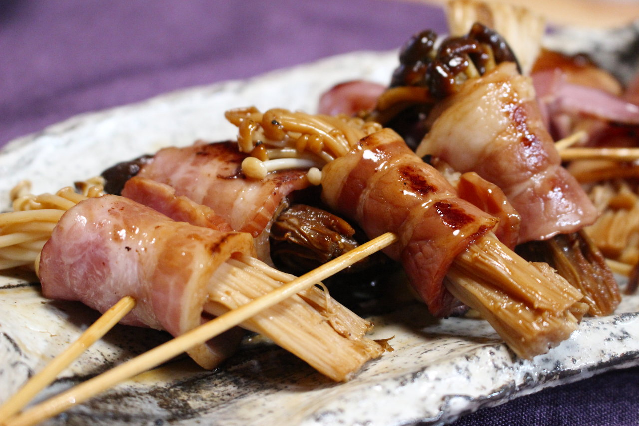 - 조리법: 에노키버섯을 베이컨으로 감싸 꼬치에 끼운 후, 타레로 양념해 굽습니다.