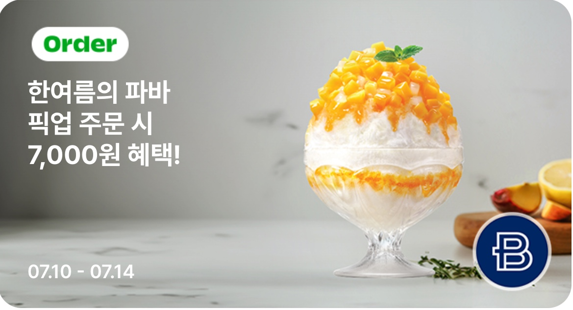 이미지에 보면 " 부더운 여름은 파바빙수와 함께" 되어 있기에 빙수만 할인 대상인줄 알았으나,