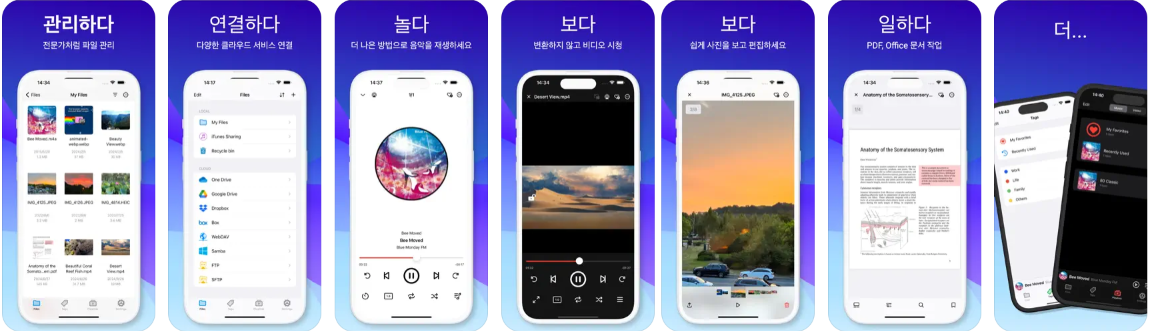 iOS 기기에서 파일을 관리하는 더 나은 방법. 가장 인기 있는 클라우드 서비스와 구식 NAS/WebDAV/FTP/SFTP 서버에 액세스하고, PDF, Office 문서를 보고, 번거로운 변환 없이 대부분의 오디오/비디오 형