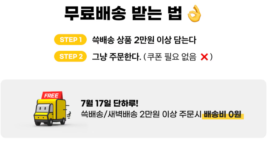 정확히 말하면 무료 배송이 아닌, 기존 4만원 이상 무료 배송에서 2만원 이상으로 배송 허들이 줄어 든것인데..
