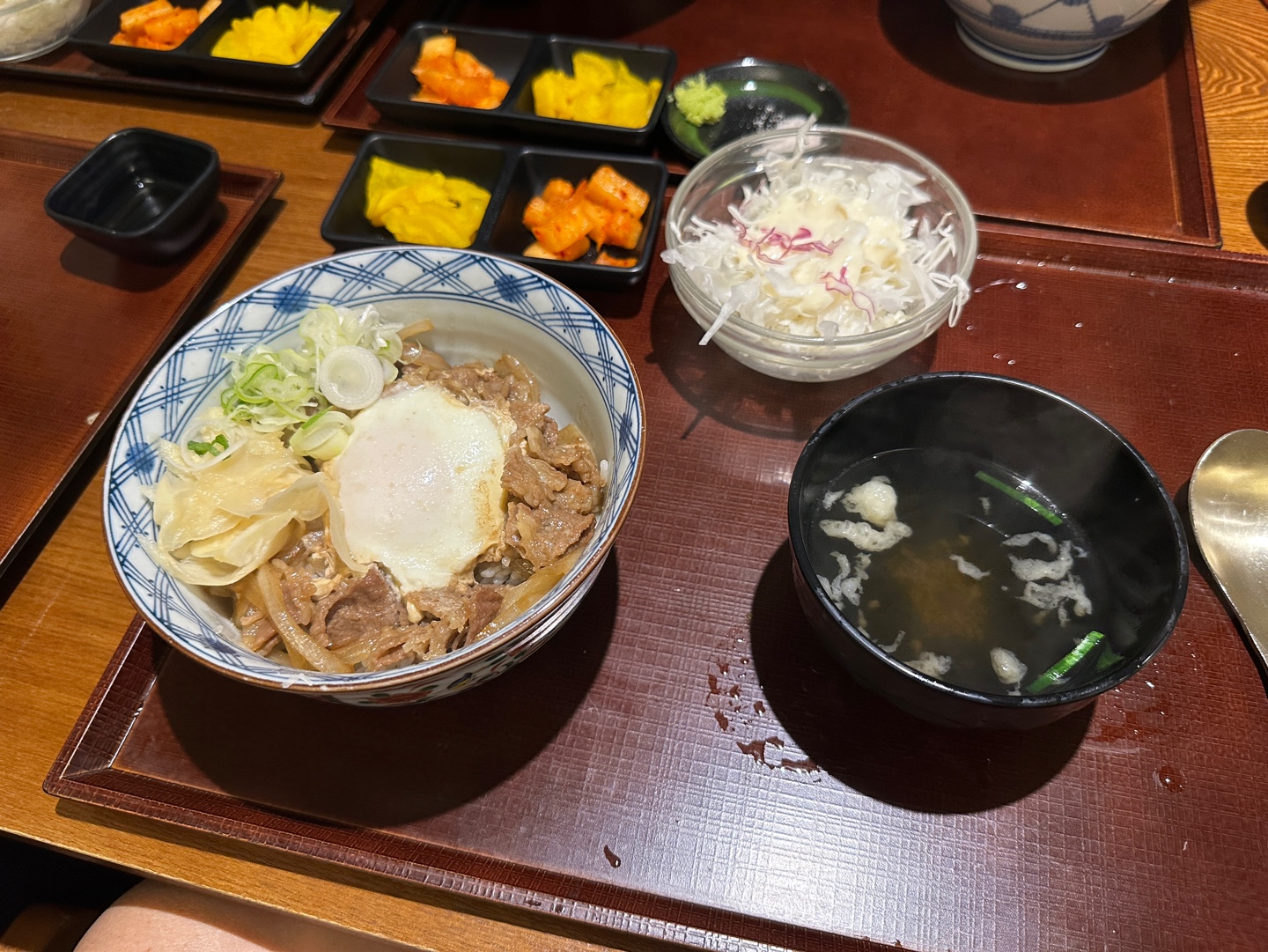 제가 먹은 규동 단품입니다. 단품이다 보니 튀김 또는 우동은 없고, 우동국물 만이 제공이 되었습니다.