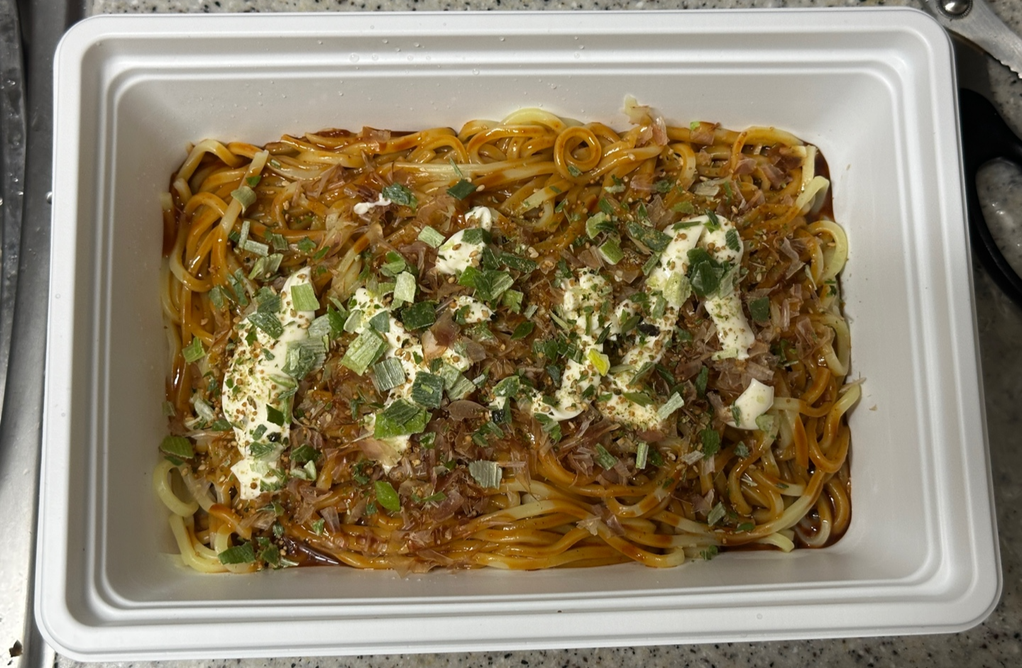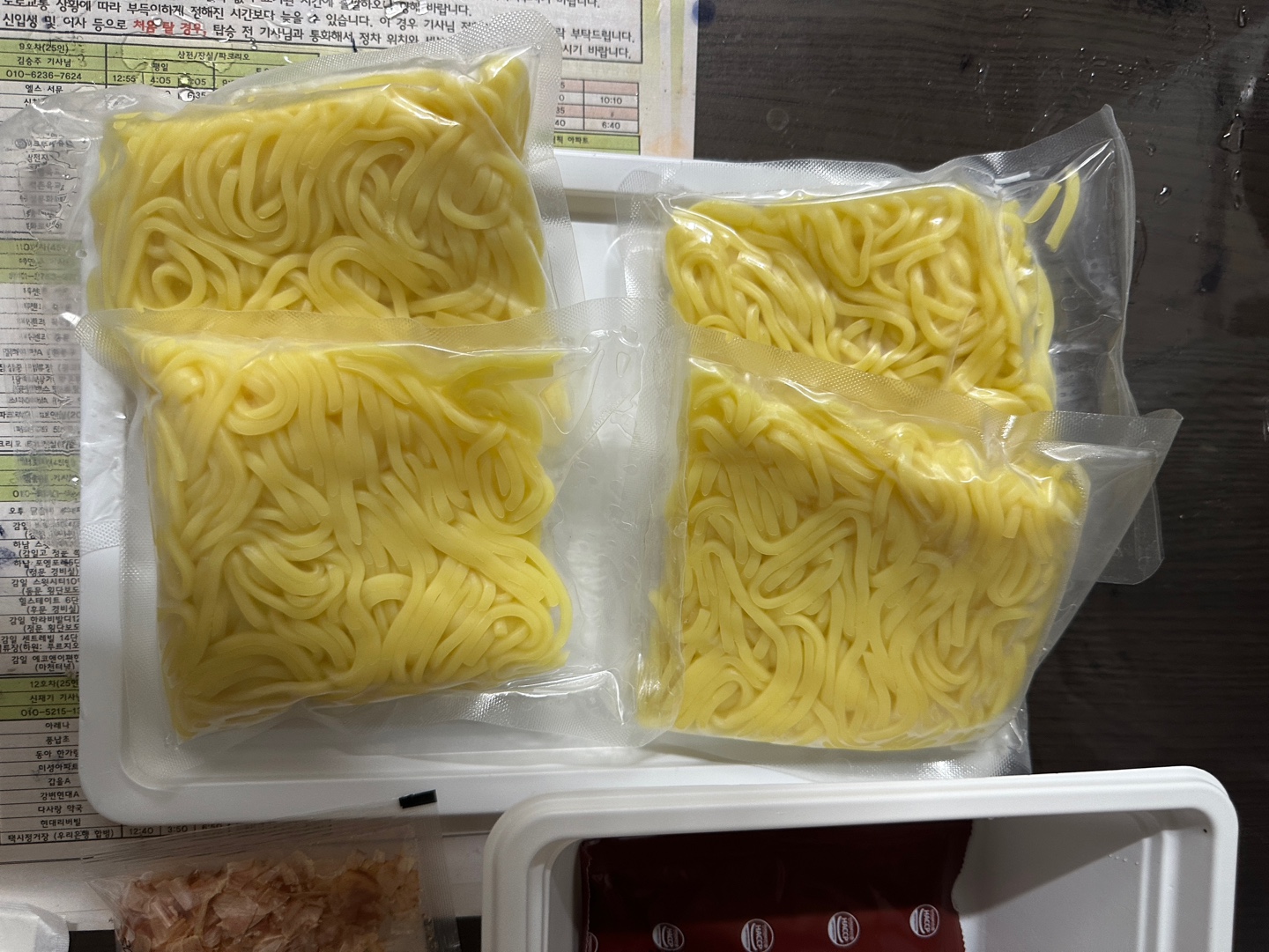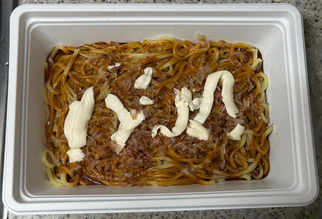 짱구 야끼소바의 구성은 면 4새, 야끼소바소스 2개, 혼다시 2개, 건조파 1개, 초생강 1개, 마요네즈 2개,