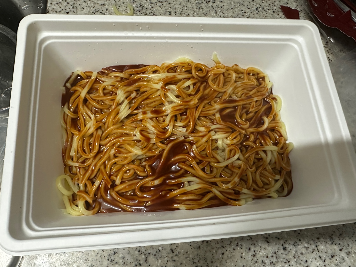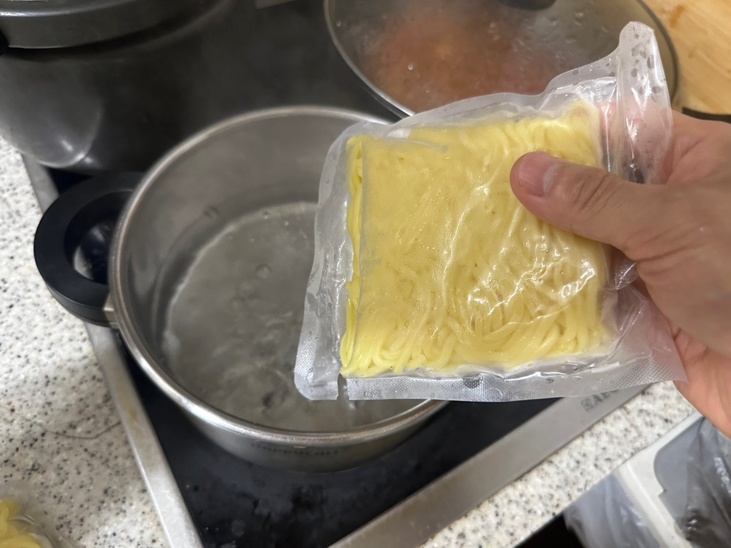 물이 끓기 시작하여 야끼소바 면을 넣었습니다.