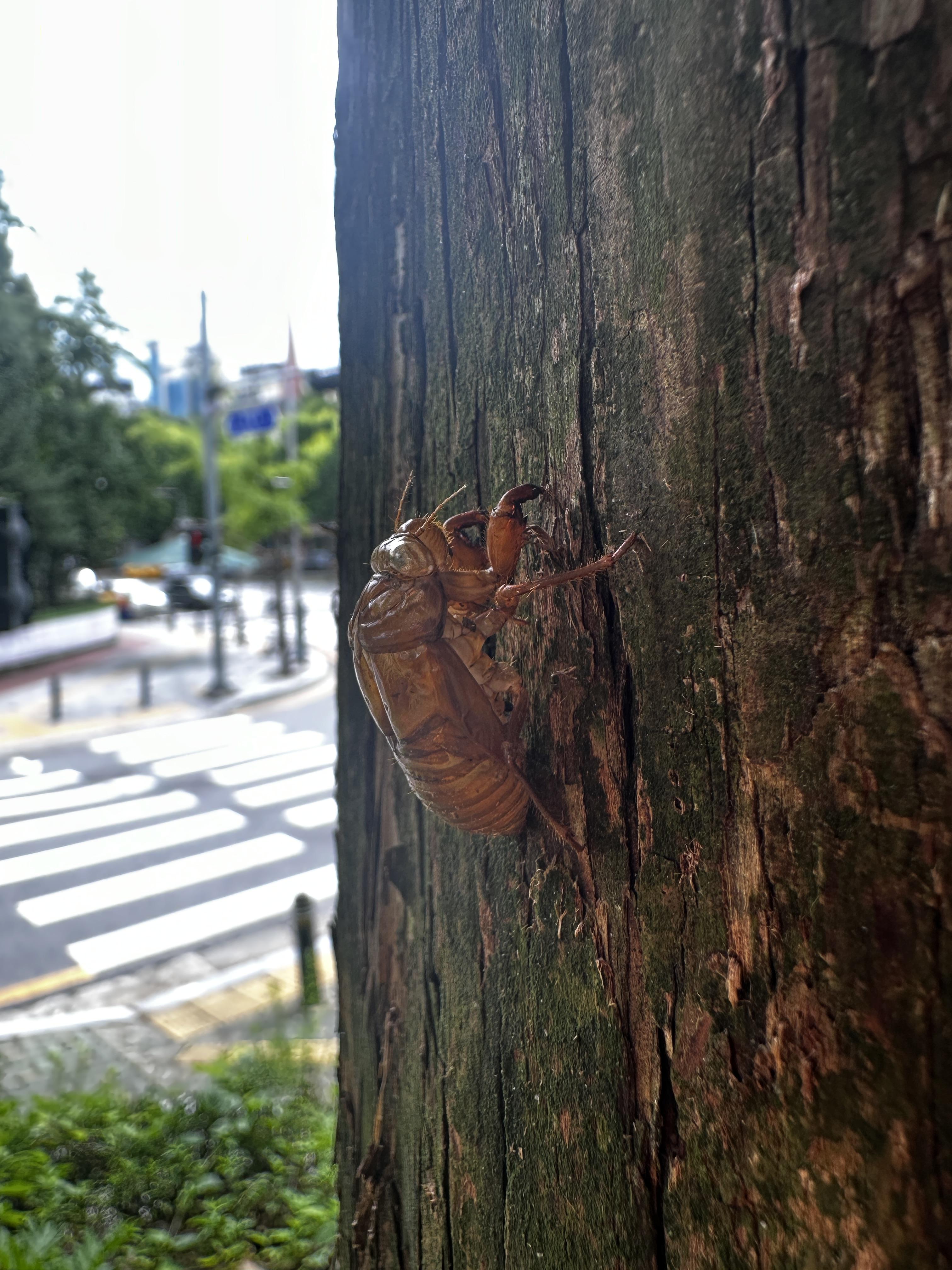 매미가 얼마나 많은지 한나무에 두세마리는 기본으로 매달려 있습니다.