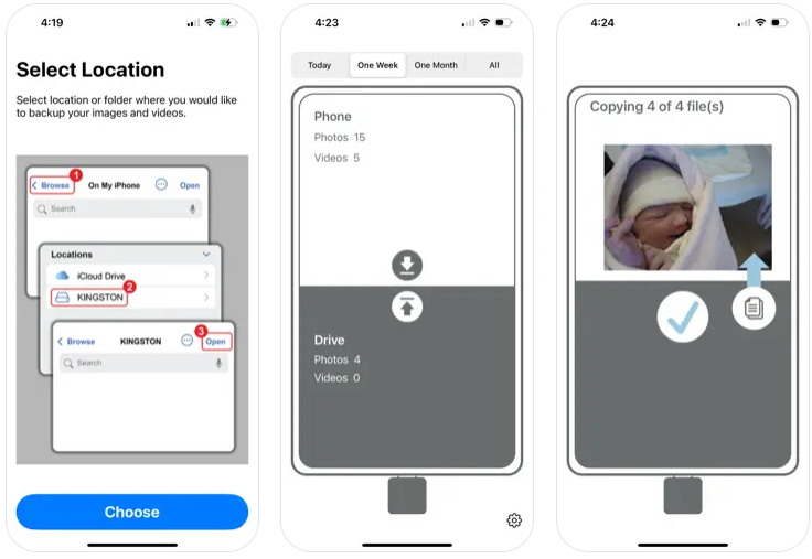 • USB 드라이브를 통해 다른 PhotoSaver 사용자와 파일을 공유하면 컴퓨터나 구독 기반 클라우드가 필요 없습니다.