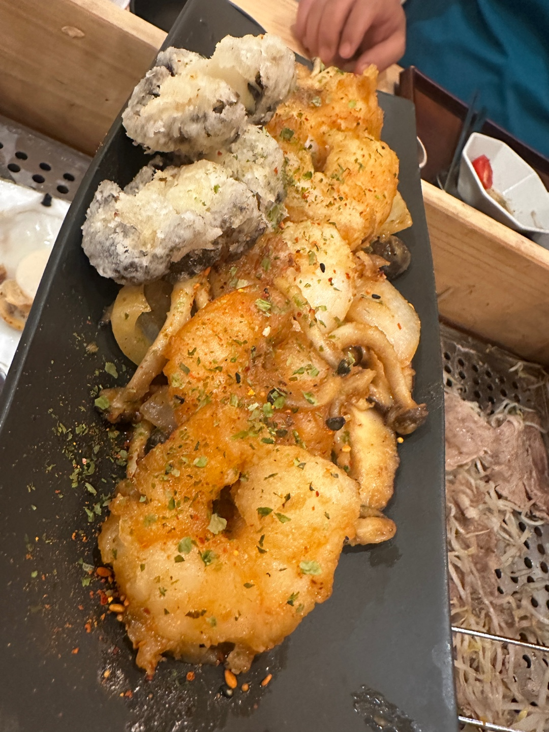 감사하게도 마지막으로 새우와 버섯을 튀겨 정확한 이름은 모르겠으나 서비스로 준비해 주셨습니다. 정말 감사합니다.