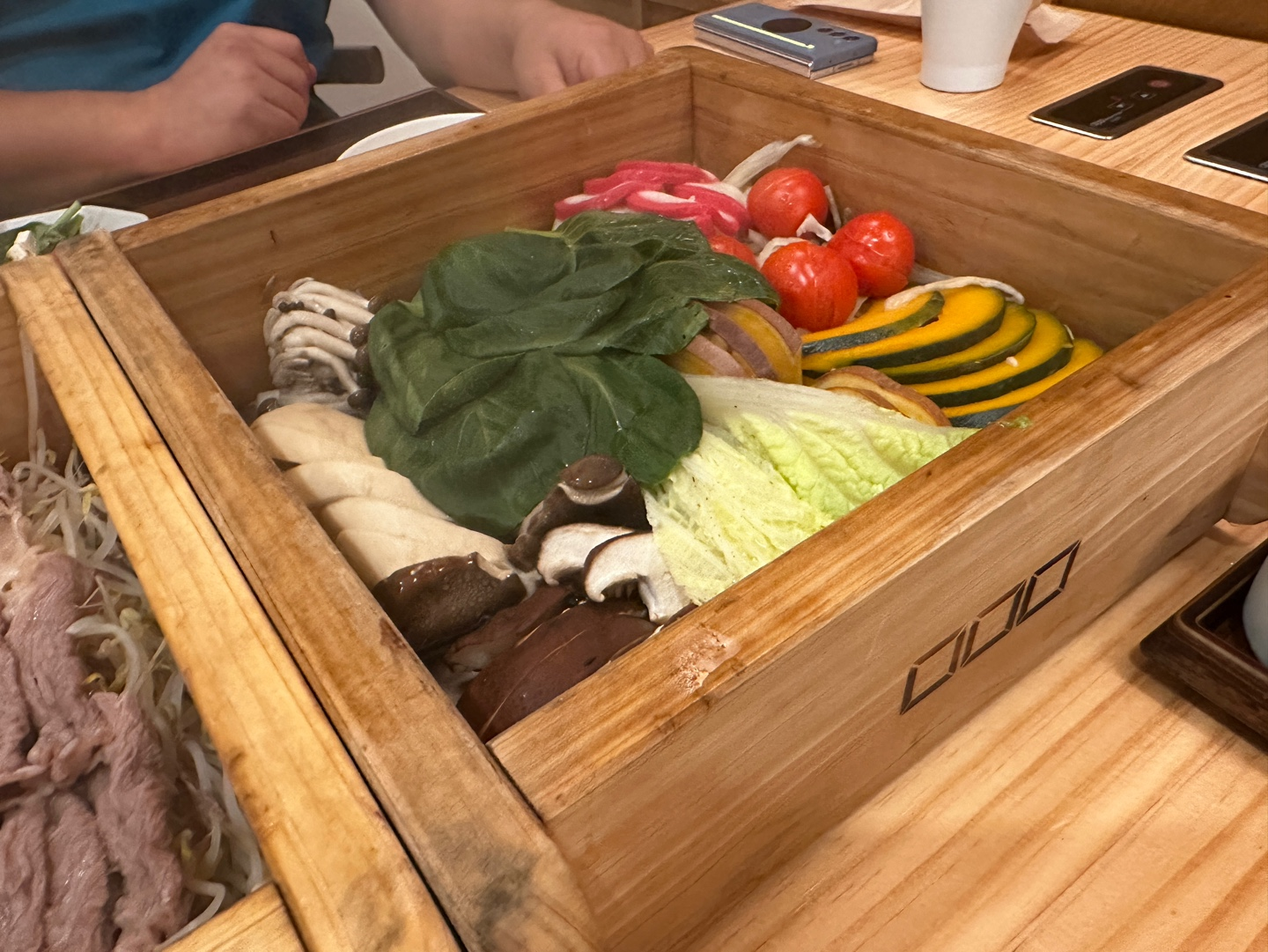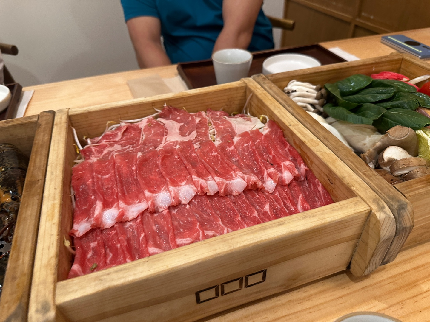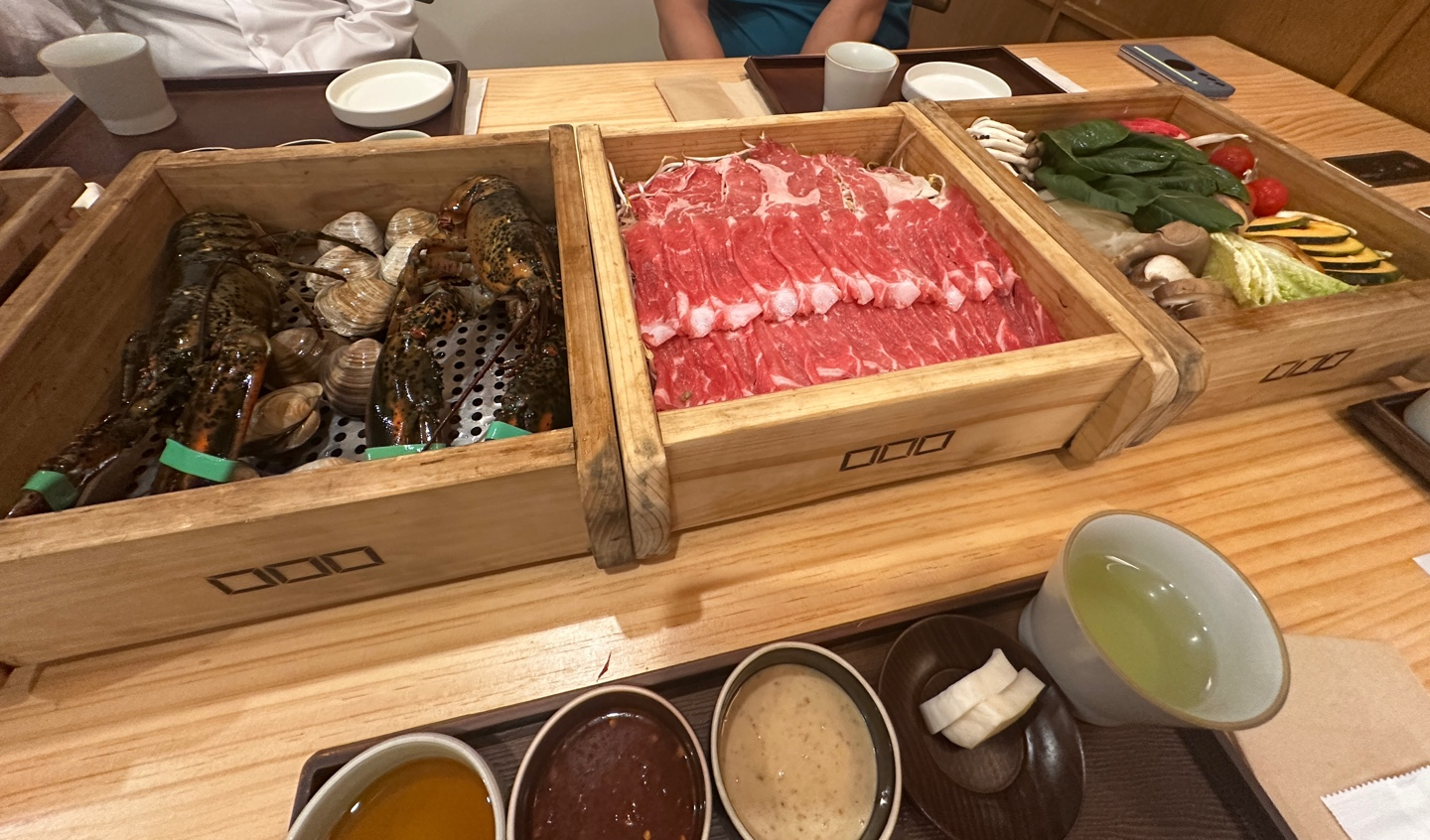 편백나무틀에 고기와 채소를 넣어 쪄서 먹는 일본식 샤부샤부입니다.