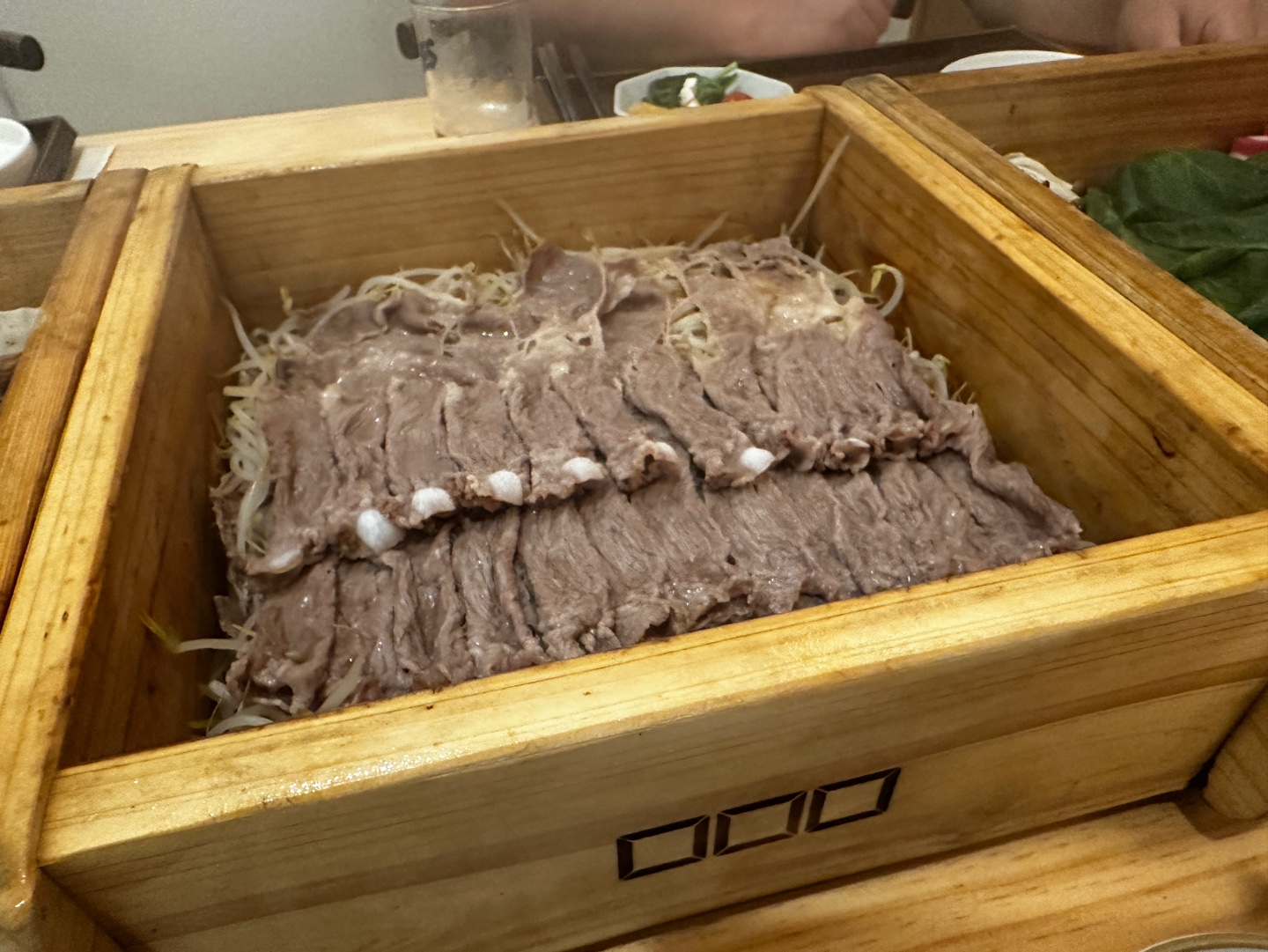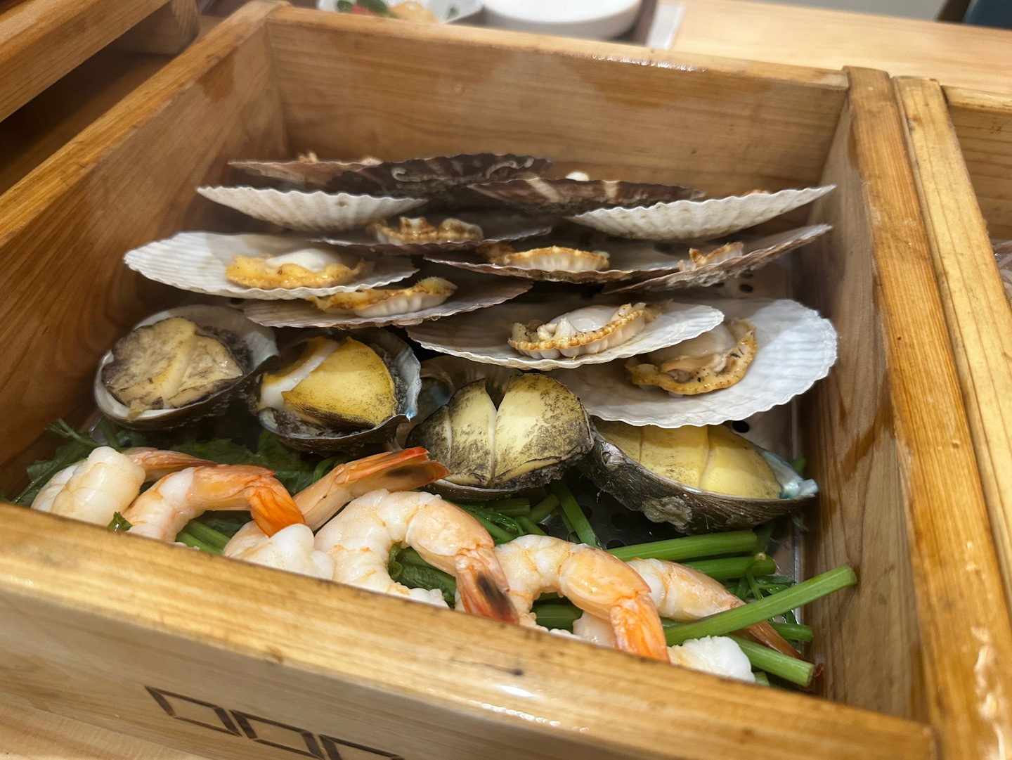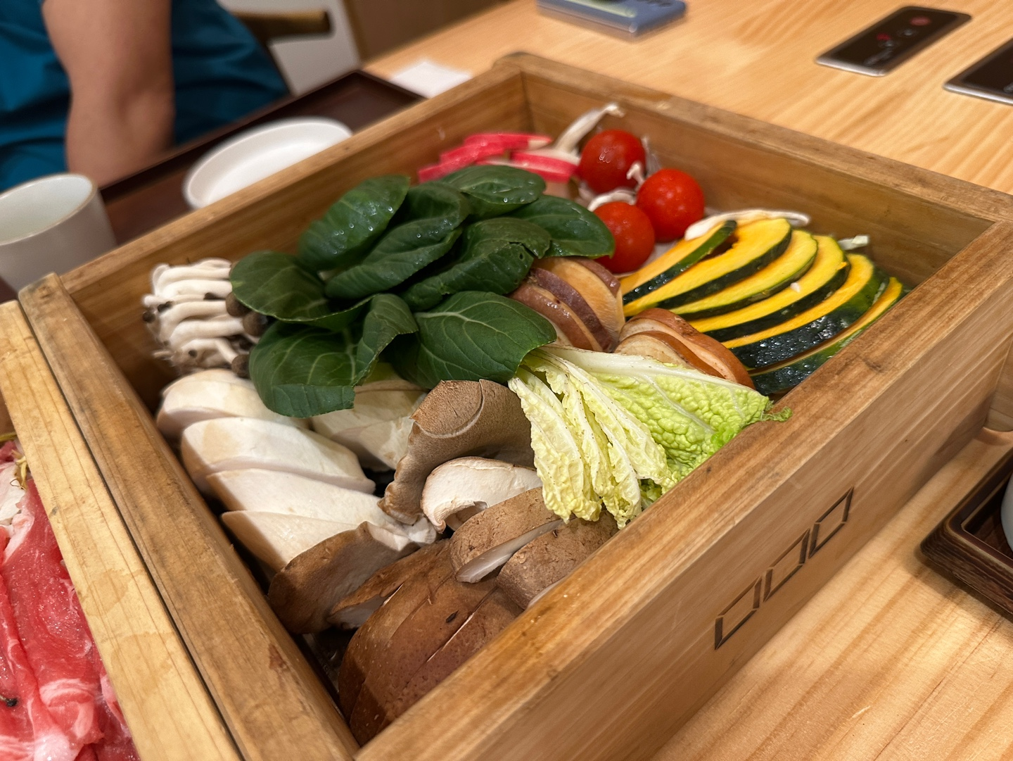 편백나무틀에 고기와 채소를 넣어 쪄서 먹는 일본식 샤부샤부입니다.