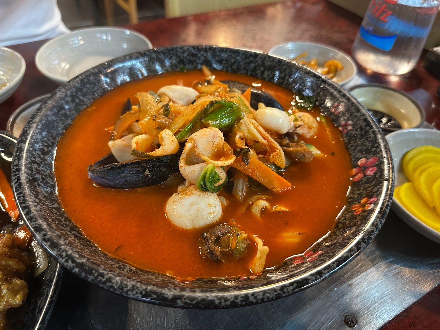 해물을 아낌없이 넣어 만들어 주는 삼선 술국입니다. 여기에 소주를 얼마나 더했는지 모르겠습니다..