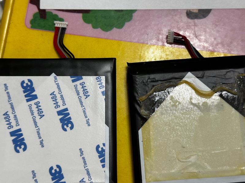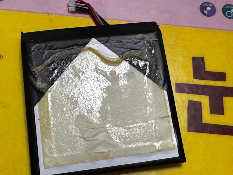 새로운 배터리의 양면테이프 종이를 제거하고 제 자리를 찾아 붙여있습니다.