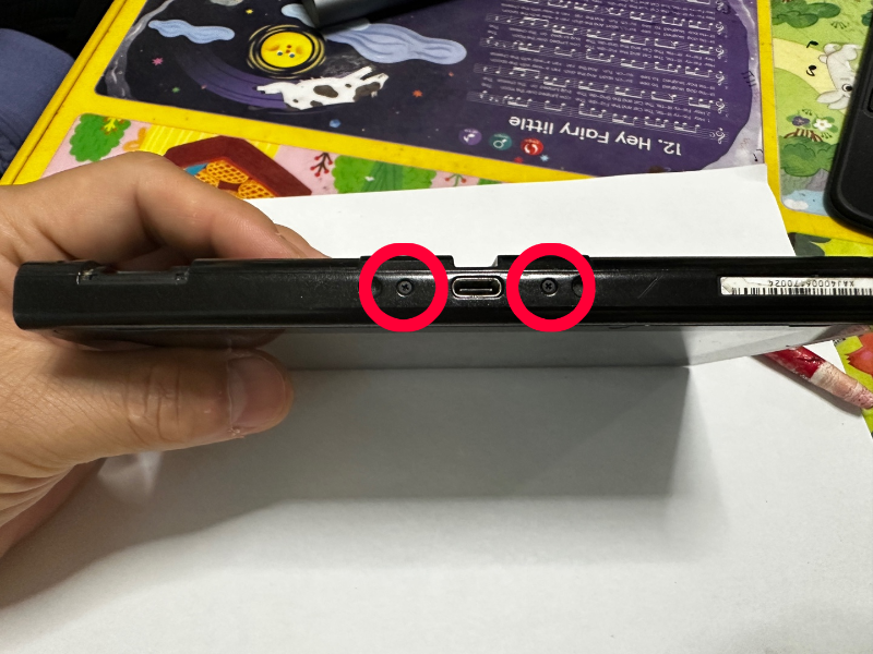 하단 부분입니다. 충전 단자 있는 부분의 양쪽 나사를 풀으시면 됩니다. +드라이버 사용입니다.
