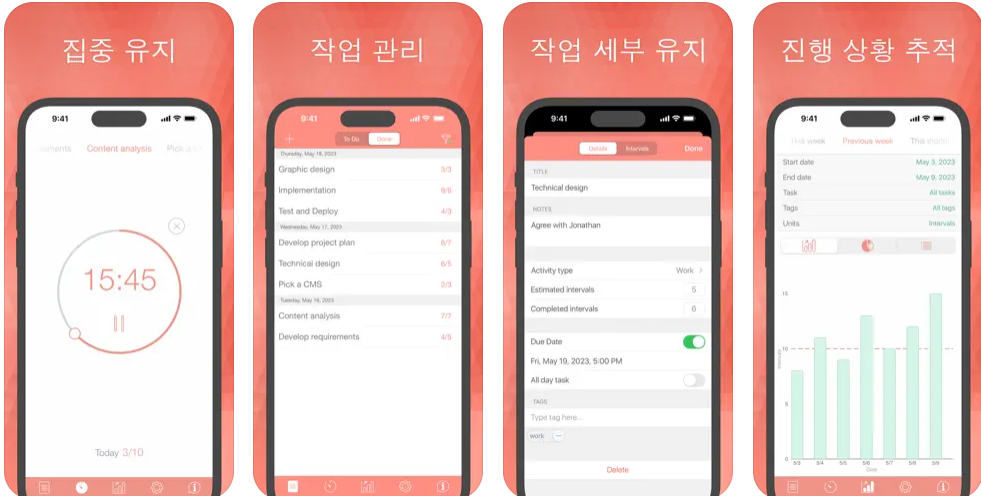 - 생산성을 극대화하기 위한 타이머 설정 사용자화: