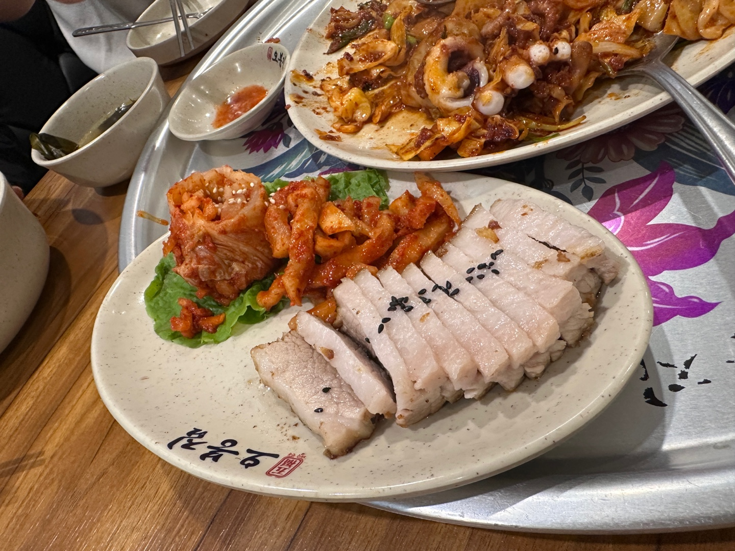 그리고 살짝 느끼해질 때쯤 나온 보쌈! 낙지볶음과 보쌈의 조합, 이거 완전 찰떡이에요.