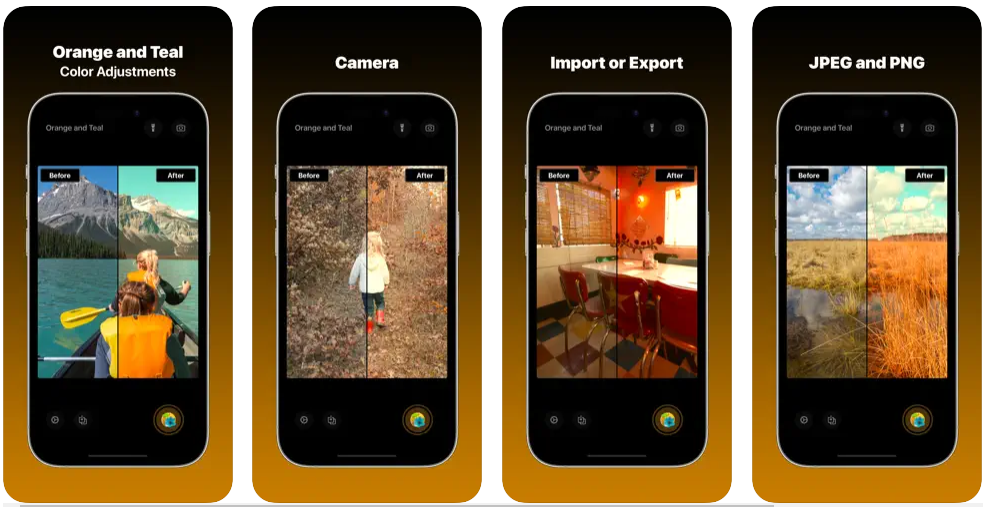 출처Link - https://apps.apple.com/kr/app/orange-and-teal-preset-camera/id6451102287