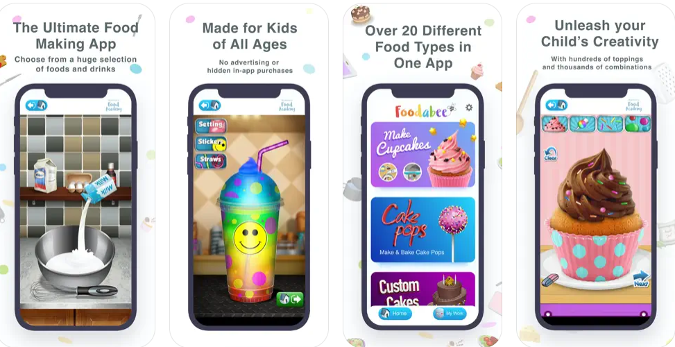 Foodabee® is the ultimate food making app designed for kids of all ages. It's a safe, ad-free environment, for kids to explore, learn, and create, everything food. Key Features • Over 24 different foods and games in one app, with thousands of combina
