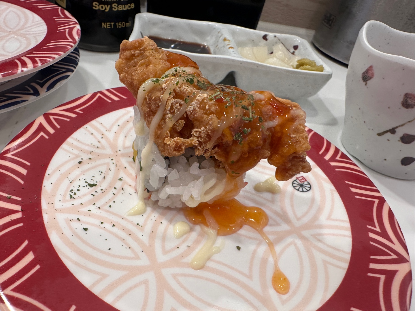 게다가 회전 초밥인데 한 접시에 초밥이 한 개씩만 놓여있는 거 있죠. 보통 두 개씩은 나오지 않나요? 😅 기대가 살짝 줄어들었지만, 그래도 먹어보기로 했습니다.