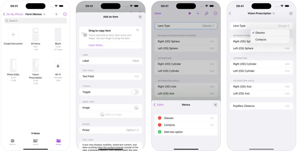 Form Memos는 독특한 메모 애플리케이션입니다. 기존의 자유형 메모와 달리 다양한 양식 항목(예: 텍스트 필드, 레이블, 이미지 등)을 사용하여 유연하고 체계적인 메모 템플릿을 쉽게 만들 수 있습니다. 더 쉬운 탐색을 위해 관련 양식 항목을 섹션으로 그룹화할 수도 있습니다.
