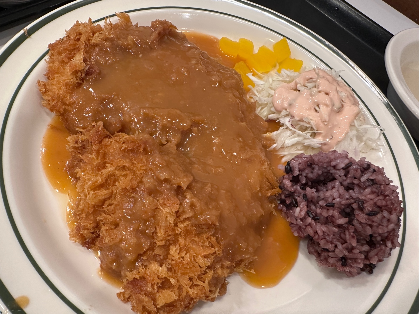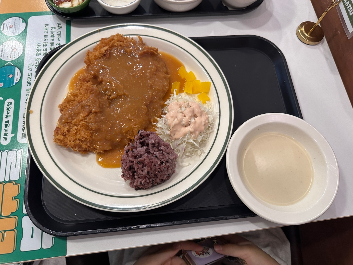 돈까스가 함께 나온 스프도 진하고 부드러웠고, 고소한 향이 식욕을 돋웠습니다. 돈까스 소스는 살짝 달달한 편이라 아이들도 쉽게 좋아할 맛이더군요. 한 조각 먹어보니 부드러운 고기가 입에서 감칠맛이 퍼지는 느낌이 아주 만족스러웠습니다.