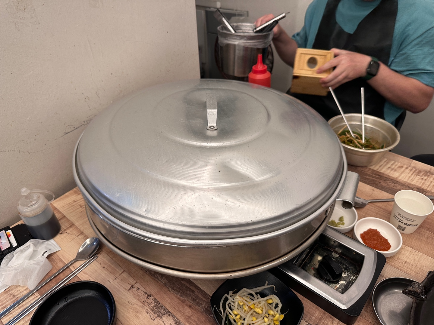 오늘의 선택은 광명역 AK 어반몰에 위치한 솥삼조입니다. 지나갈 때마다 풍기는 그 맛있는 고기 냄새를 참을 수가 없어서, 이번에야말로 다같이 가보자고 제안했죠! 다들 흔쾌히 동의해주어 기대 가득한 발걸음으로 향했습니다.
