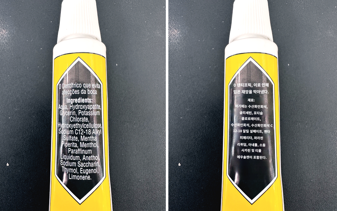 그런데 곧바로 이어지는 DENTIFRICA라는 단어를 보고 '어? DENTI... 이거 이빨 관련 단어 같은데? 🤔'라는 생각이 들더라고요.