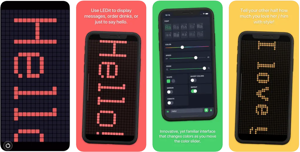 Light Up Your Words with LEDit! Transform your iPhone or iPad into a scrolling LED display for instant, eye-catching communication. Whether you’re in a crowded bar, a concert, or need a silent but powerful way to express yourself, LEDit makes sure you
