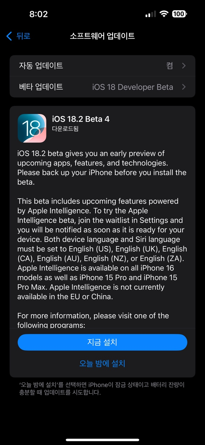 출처 Link - https://developer.apple.com/documentation/ios-ipados-release-notes/ios-ipados-18_2-release-notes