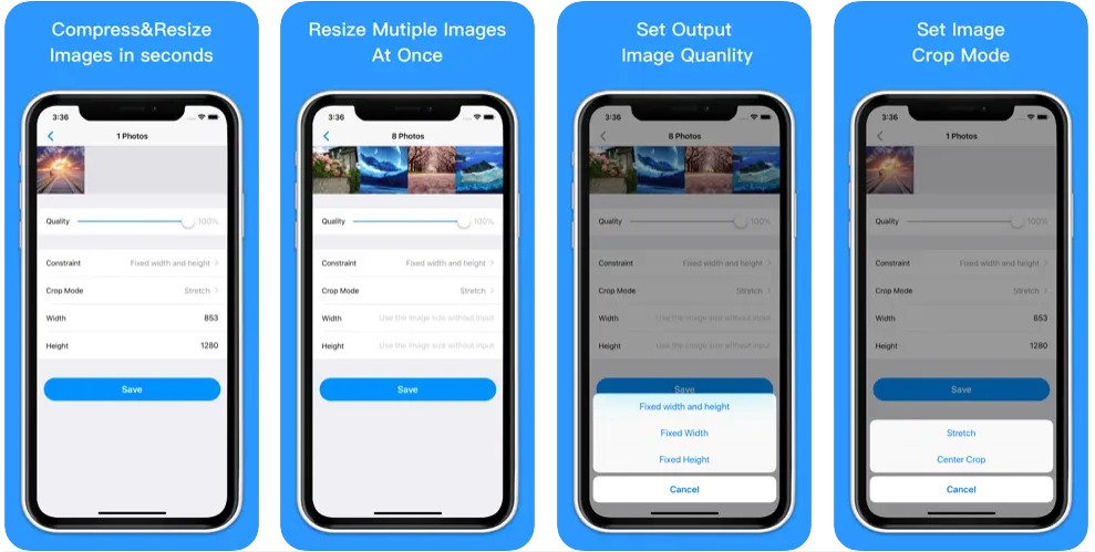 This app helps you to resize image in a few seconds. Features: - Resize your photos in seconds - Resize multiple images at once - Unlock or lock the width to height ratio - Set output image quanlity - Show the original size and of your image - Easy to u