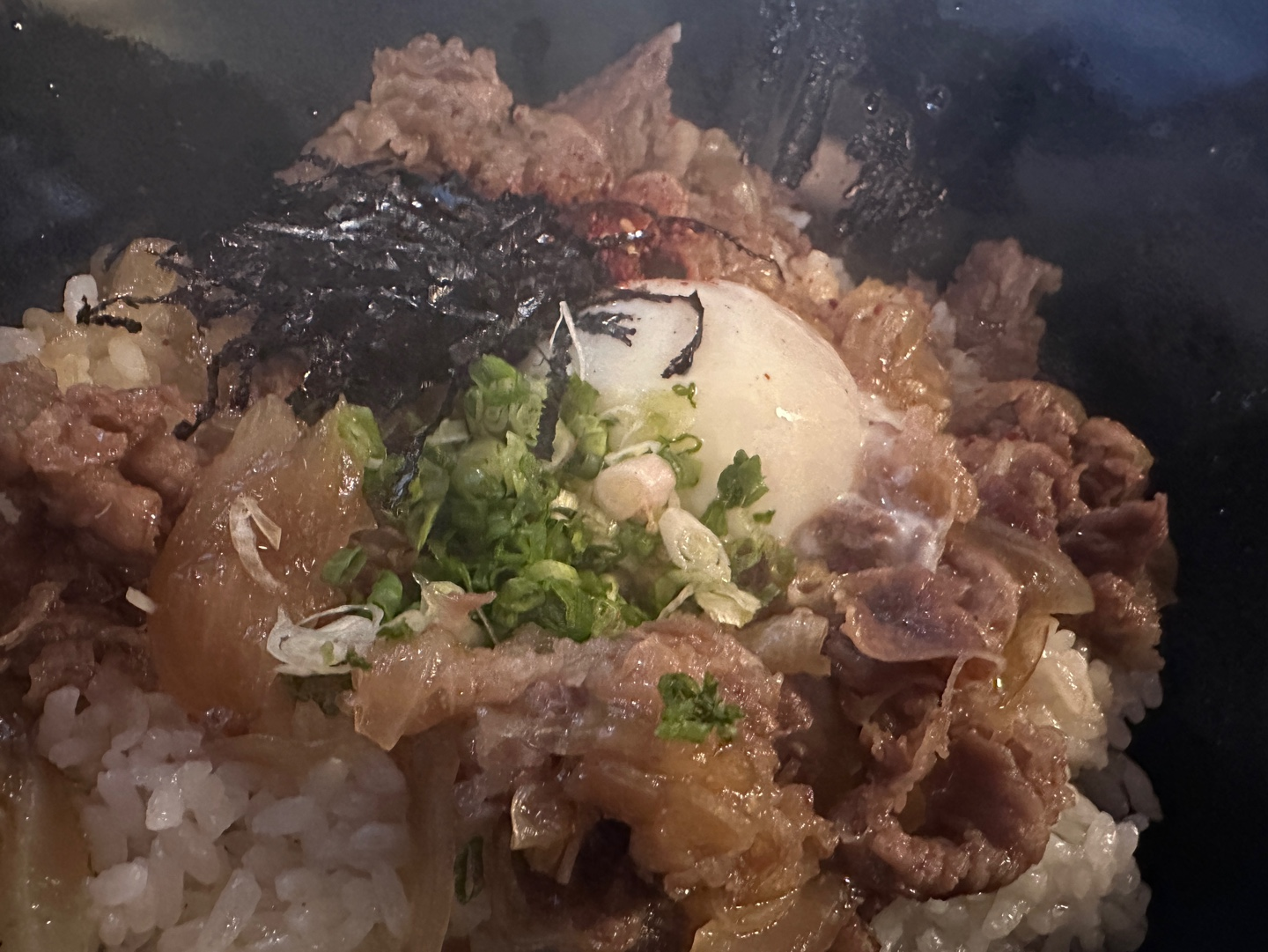 큰 그릇에 가득 담긴 규동은 비주얼부터 먹음직스러웠어요.