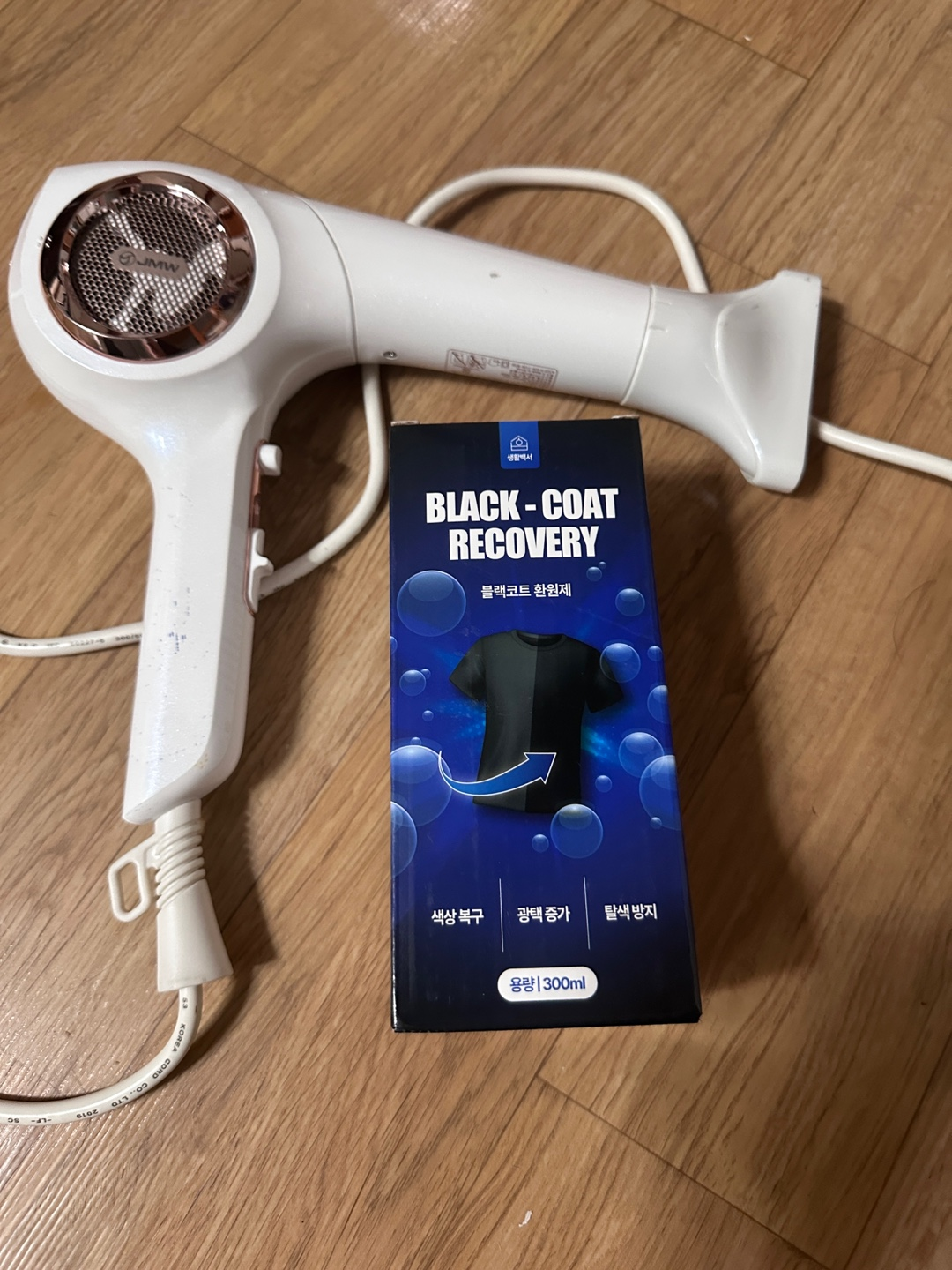 드라이기로 말리는 동안, 원래 검정으로 돌아간 것 같았던 부분이 서서히 다시 바랜 색으로 돌아가기 시작했습니다.