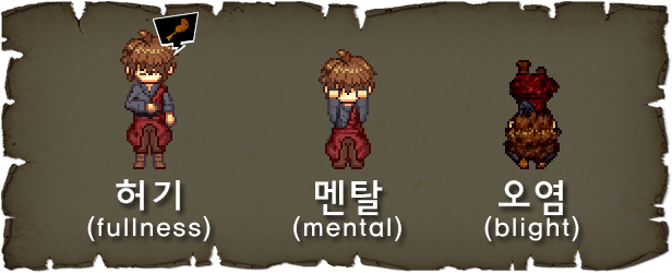 ‘유어 블라이트’에는 생존에 영향을 미치는 세 가지의 수치가 있습니다.