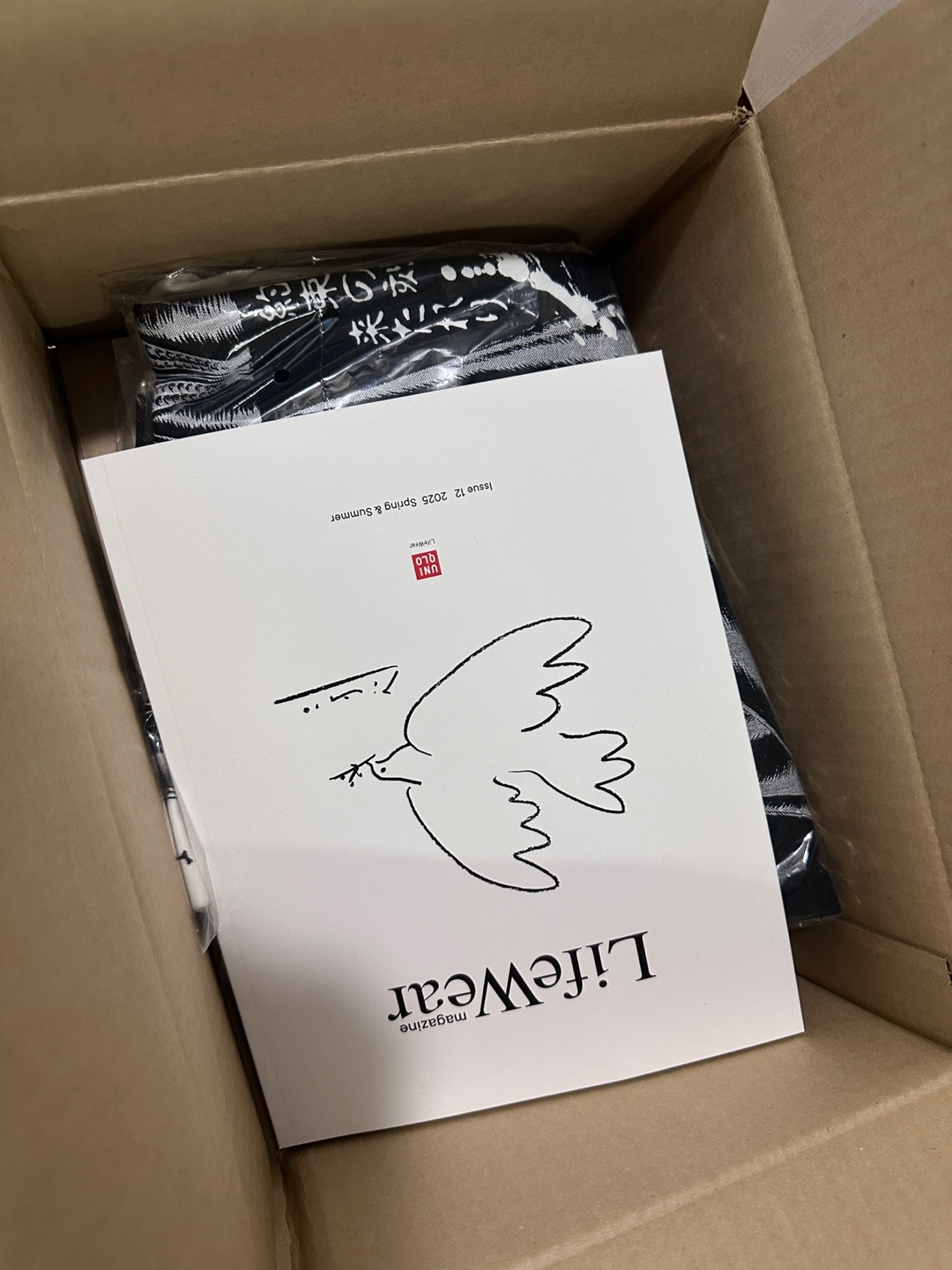 택배는 제가 주문한 티셔츠와 유니클로 카달로그(?) 가 포함이 되어 수령 하였습니다.