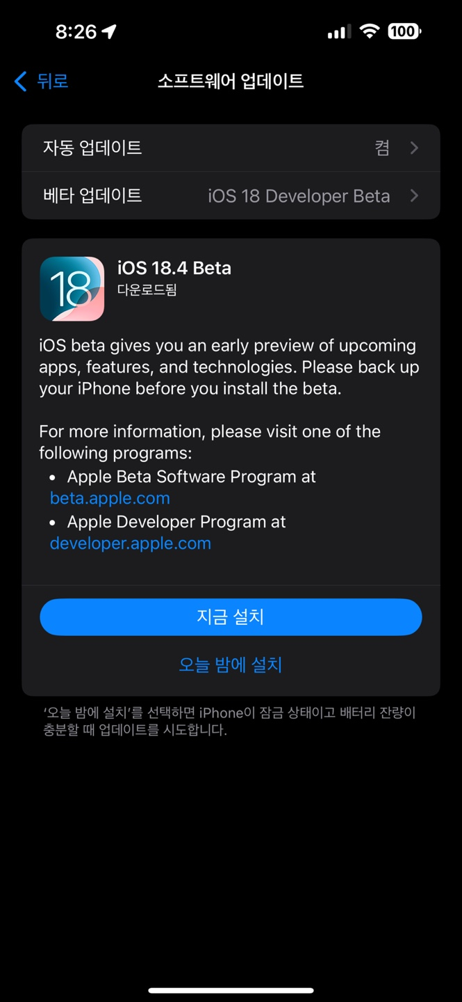 iOS 18.3 Beta 4 업데이트 되었습니다.