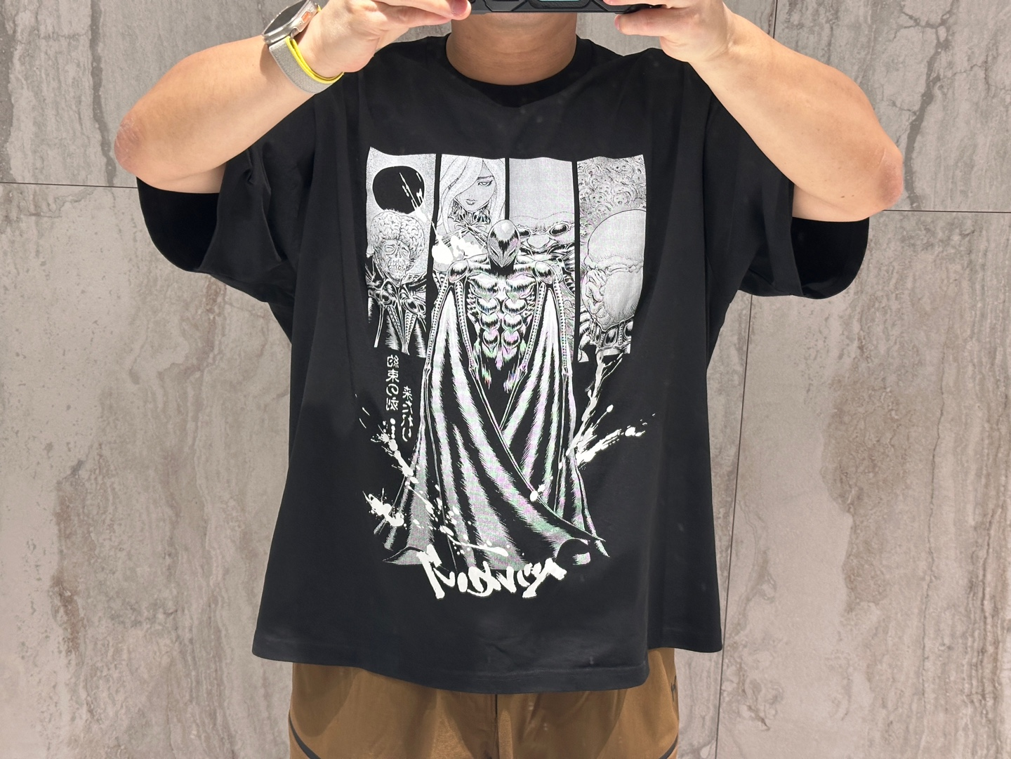 오늘은 드디어! **유니클로 x 베르세르크 콜라보 블랙 티셔츠 "고드 핸드"**를 입고 출근했습니다. 💀✨