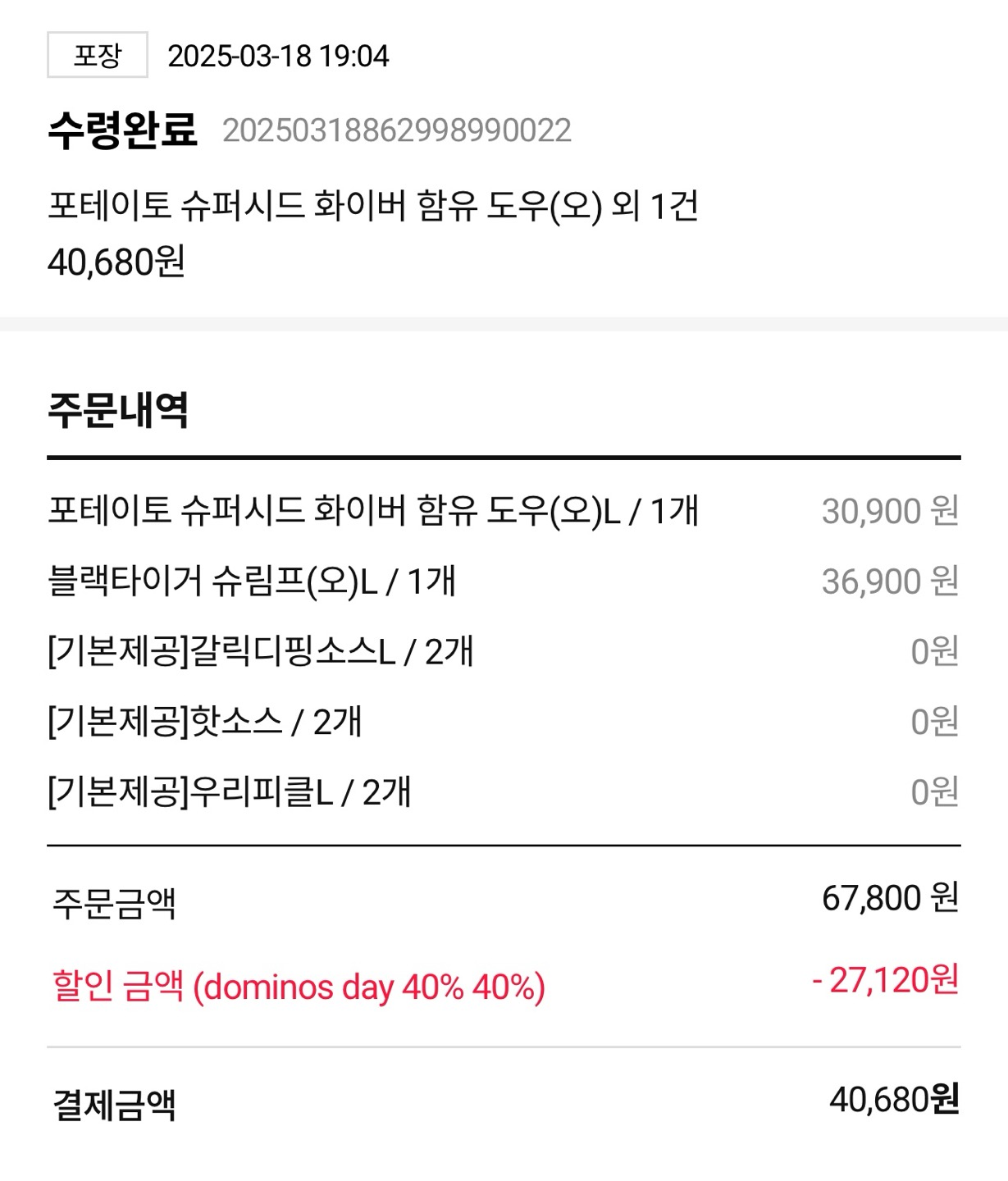 피자를 주문하려고 보니, 마침 도미노피자 도미너스데이!