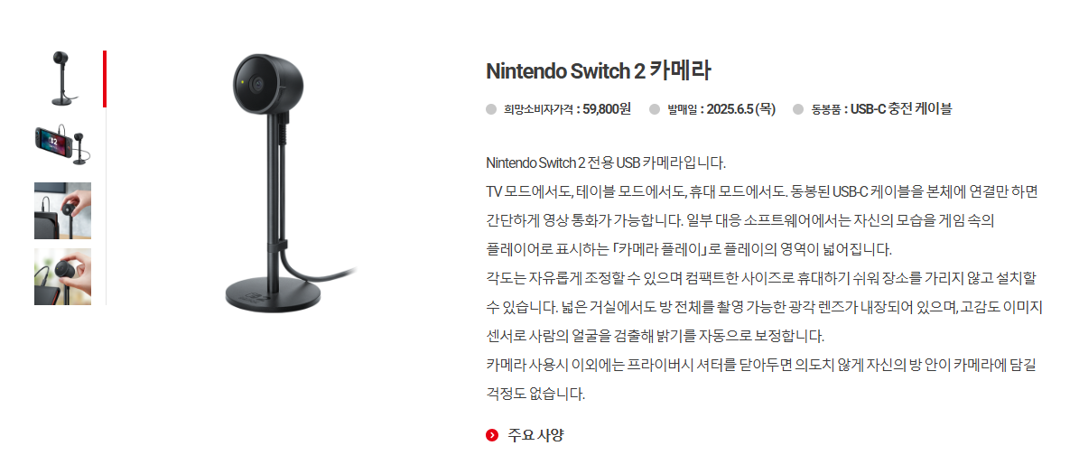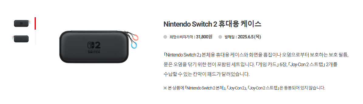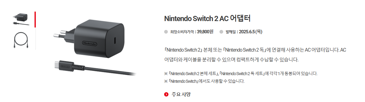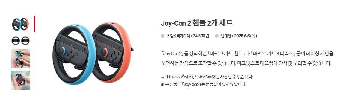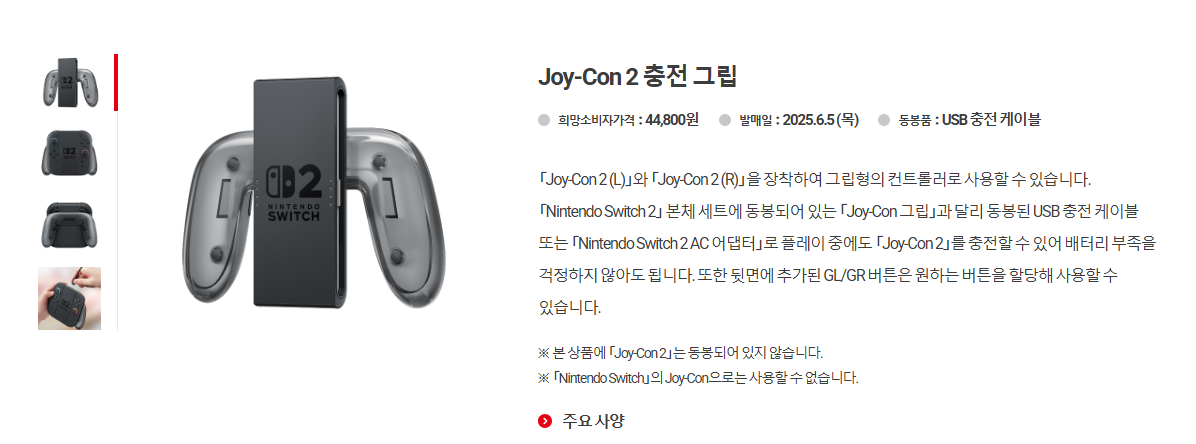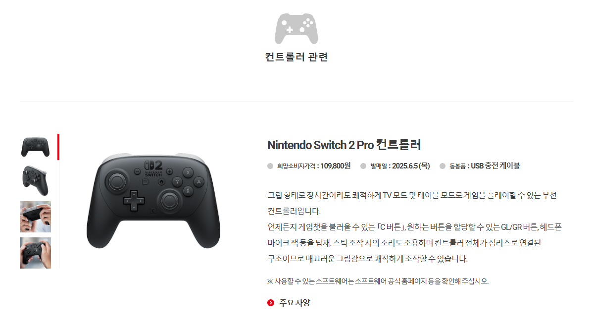 출처 Link - https://www.nintendo.com/kr/hardware/switch2/accessories/index.html