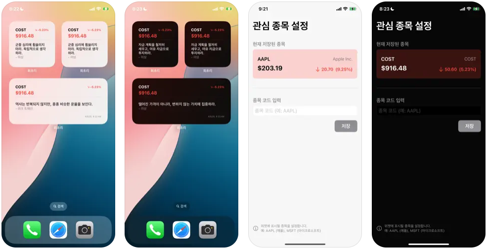 홈 화면에 배치된 위젯은 실시간 주가 변동을 감지해,