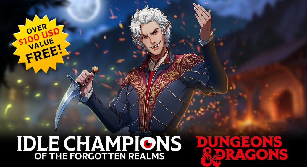 Idle Champions of the Forgotten Realms 100달러 상당의 Astarion's Champions of Renown Pack 증정 프로모션이 진행 되고 있습니다.