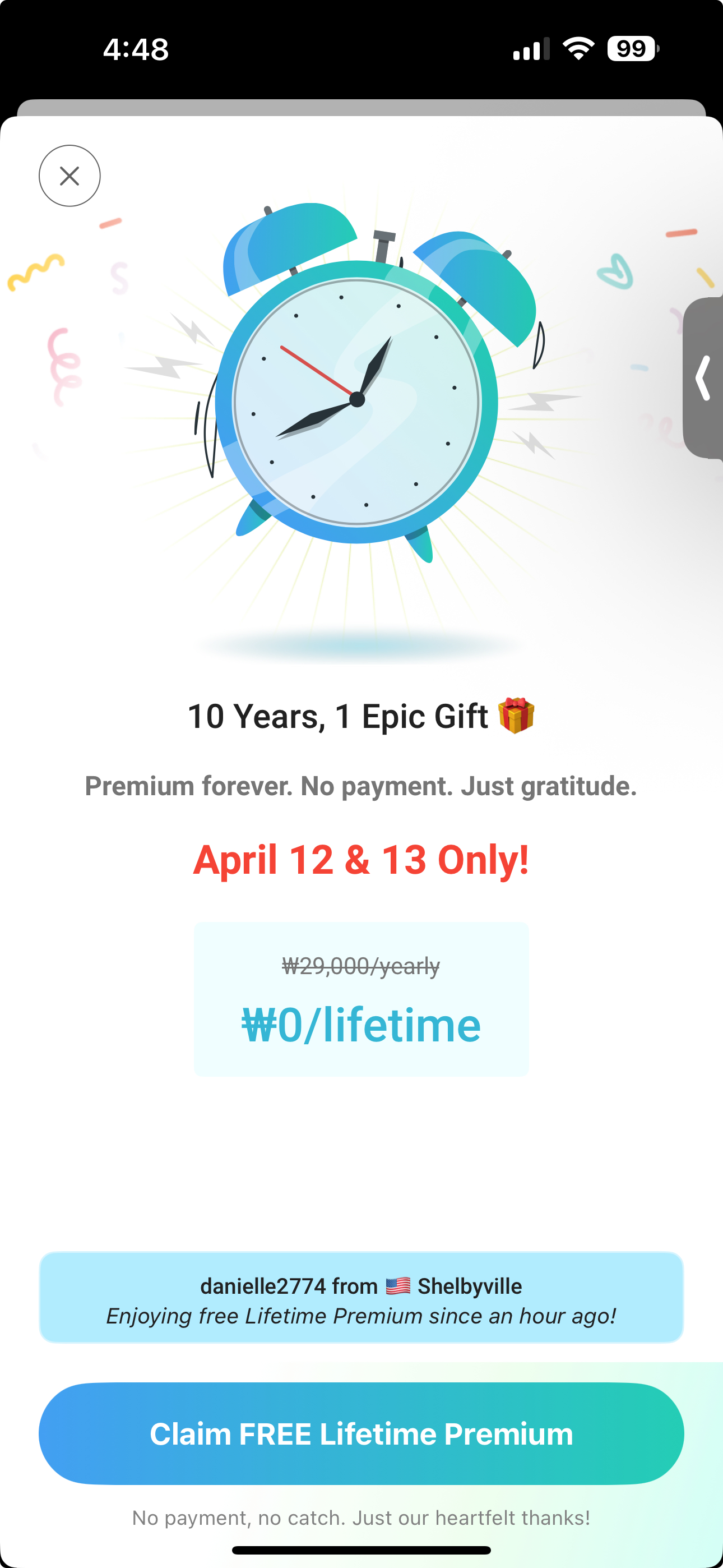 "Claim Free Lifetime Premium" 을 눌러 주시면 무료 구독이 완료가 됩니다.